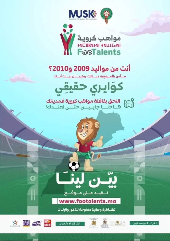 (*) إعلان هام بشأن التسجيل الالكتروني للمشاركة في مسابقة مواهب كروية عبر الاستمارة التالية : https://footalents.ma/ar/conditions