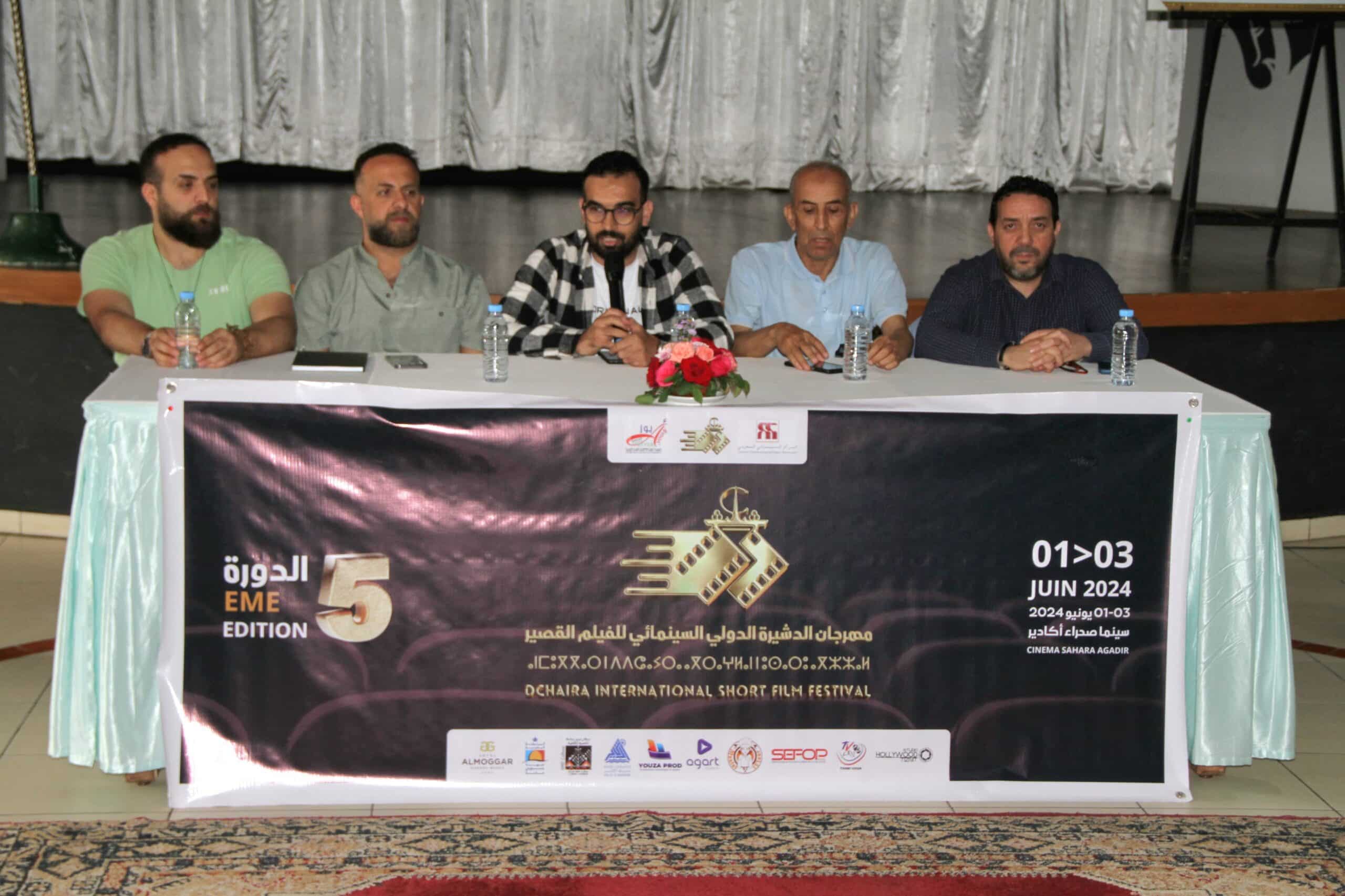 للإعلان عن نفاصيل النسخة الخامسة من مهرجان الدشيرة الدولي السينمائي للفيلم القصير، والتي ستقام في الفترة الممتدة من 01 إلى 03 يونيو بمدينة أكادير ، عقدت ندوة صحفية يوم الخميس 30 مايو 2024 على الساعة السادسة مساء بأحد فنادق مدينة اكادير، حضر الندوة الصحفية عدد من الصحفيين والمخرجين والمهتمين بالإضافة إلى بعض المشاركين في المهرجان.