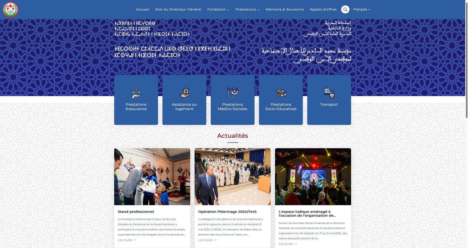 أطلقت مؤسسة محمد السادس للأعمال الاجتماعية لموظفي الأمن الوطني، ابتداءً من شهر يونيو الجاري، بوابة رقمية جديدة على شبكة الأنترنيت، تقدم محتوى تفاعلي يعرّف بحزمة الخدمات الاجتماعية والتضامنية التي تقدمها المؤسسة لفائدة منخرطيها من موظفات وموظفي الشرطة العاملين والمتقاعدين وكذا أفراد أسرهم وذوي حقوقهم.
