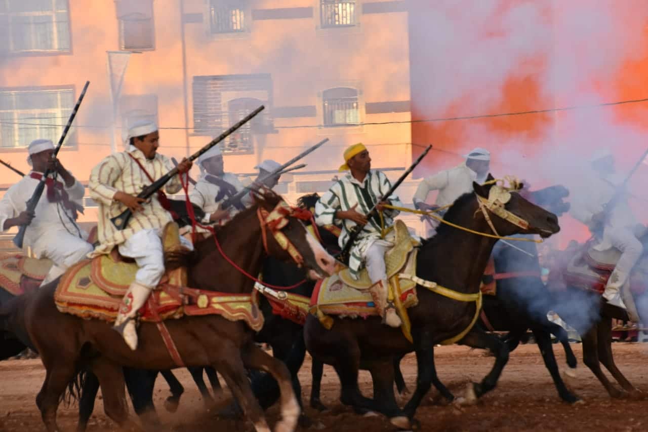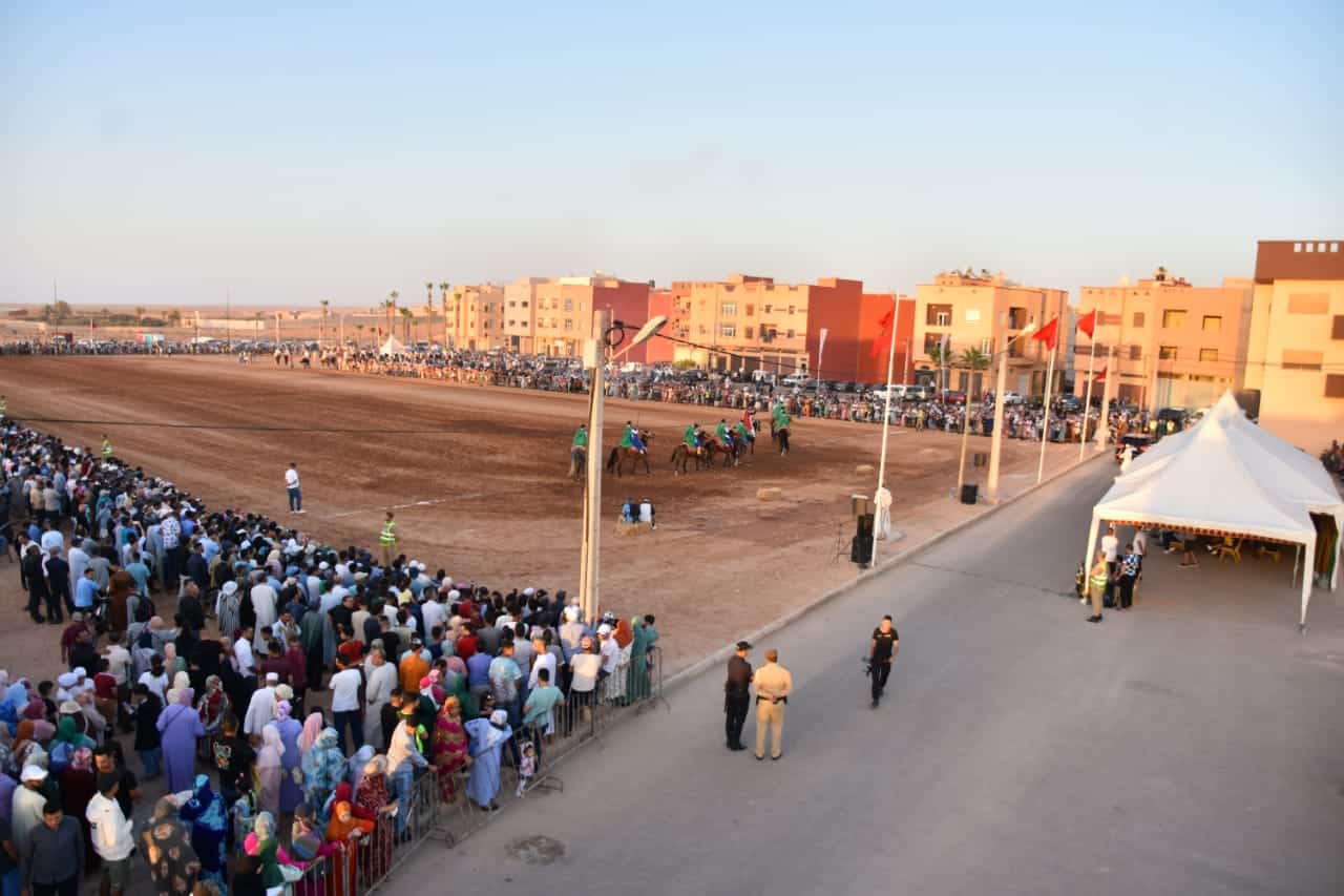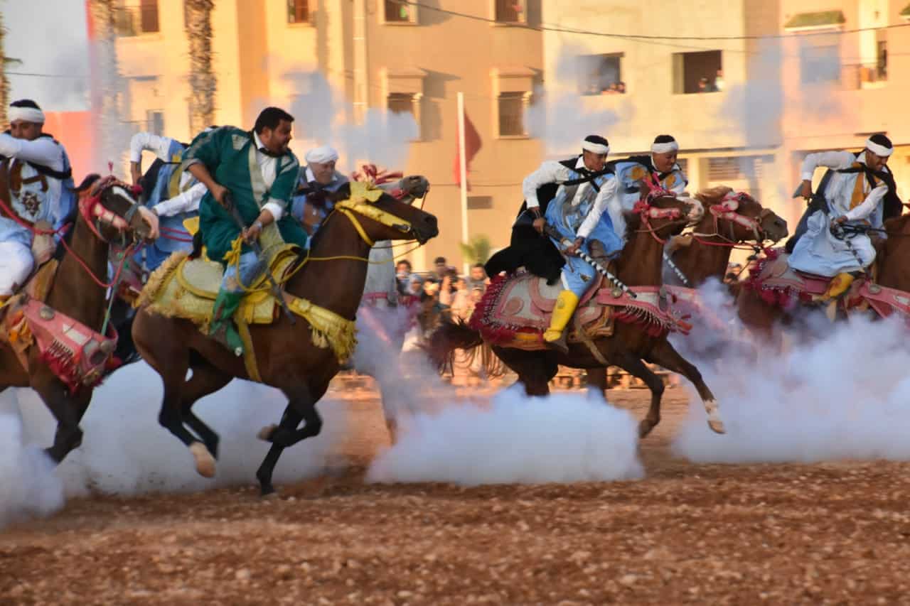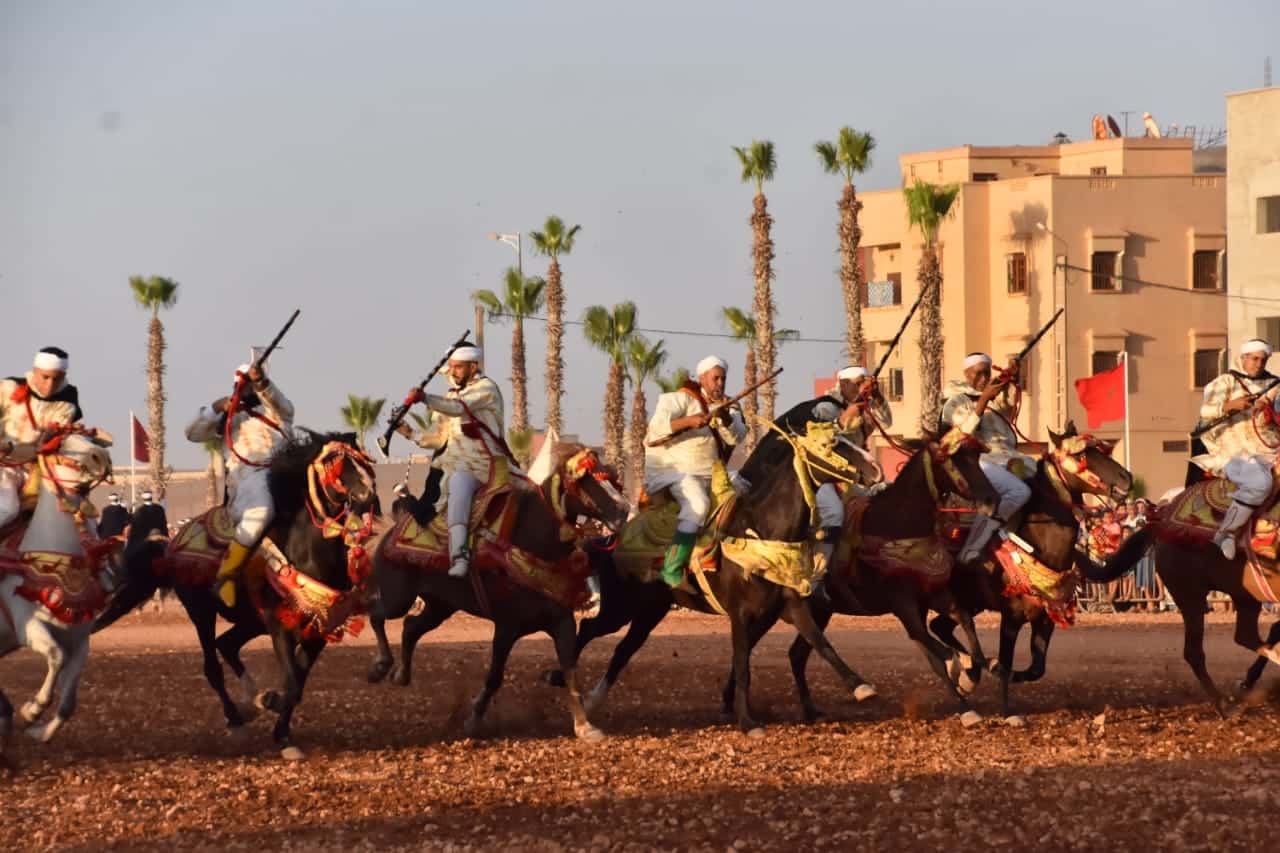 أقيمت فعاليات التبوريدة في الساحة المجاورة لدار الثقافة بتيزنيت، حيث استمتع الحاضرون بعروض مبهرة من فن التبوريدة التقليدي. يعود تاريخ هذا الفن إلى قرون طويلة، ويعكس الثقافة المغربية الأصيلة وتقاليد الفرسان المغاربة، ويعتبر جزءا لا يتجزا من تراث البلاد.