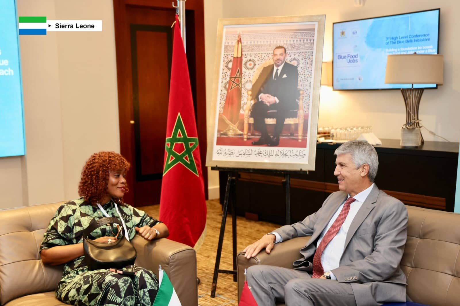 وبهذه المناسبة، عقد السيد الوزير سلسلة من اللقاءات الثنائية مع العديد من نظرائه الأفارقة لتعزيز الشراكات الاستراتيجية حول القضايا المتعلقة بالصيد المستدام وتربية الأحياء المائية وحماية النظم الإيكولوجية البحرية. واستقبل السيد الوزير على حدى كلاً من وزيرة الصيد السنغالي، ووزيرة الصيد الغيني، ووزير الصيد الليبي، ووزير الصيد الملغاشي، ووزيرة الصيد السيراليوني. وتؤكد هذه اللقاءات التزام الدول الأفريقية بالعمل يدًا بيد من أجل إيجاد حلول مستدامة للتحديات التي تواجه المحيطات، وذلك لضمان الأمن الغذائي وتحقيق التنمية الاجتماعية والاقتصادية للمجتمعات الساحلية.