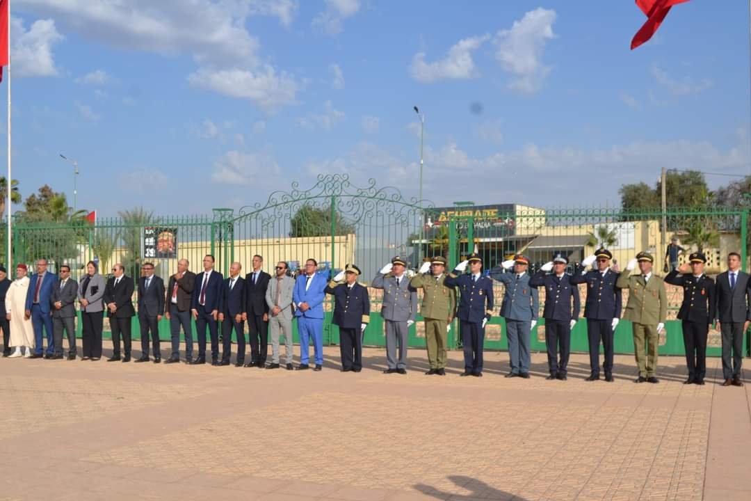 وقد تخللت المراسيم لحظات من التقدير والاحترام، حيث رفع العلم الوطني في أجواء مهيبة، مع إشادة بأمجاد تاريخية خالدة، وتعهد بمواصلة مسيرة التنمية والتقدم في مختلف مناطق المملكة، تحت القيادة الرشيدة لصاحب الجلالة الملك محمد السادس نصره الله.