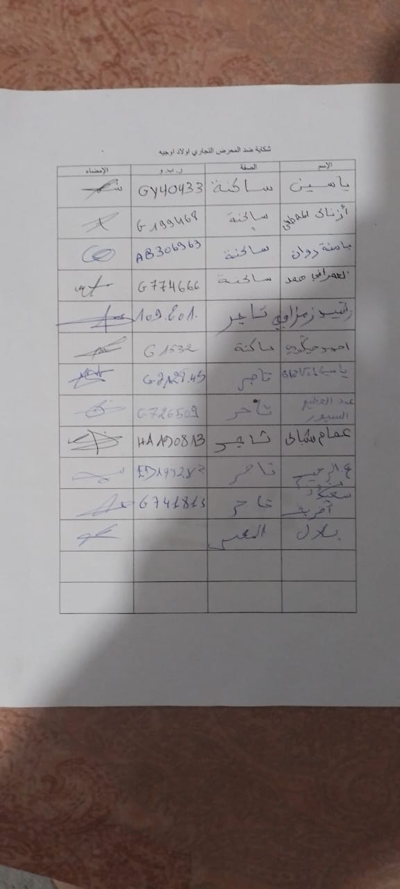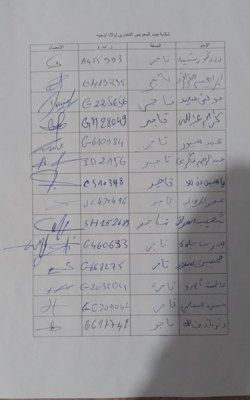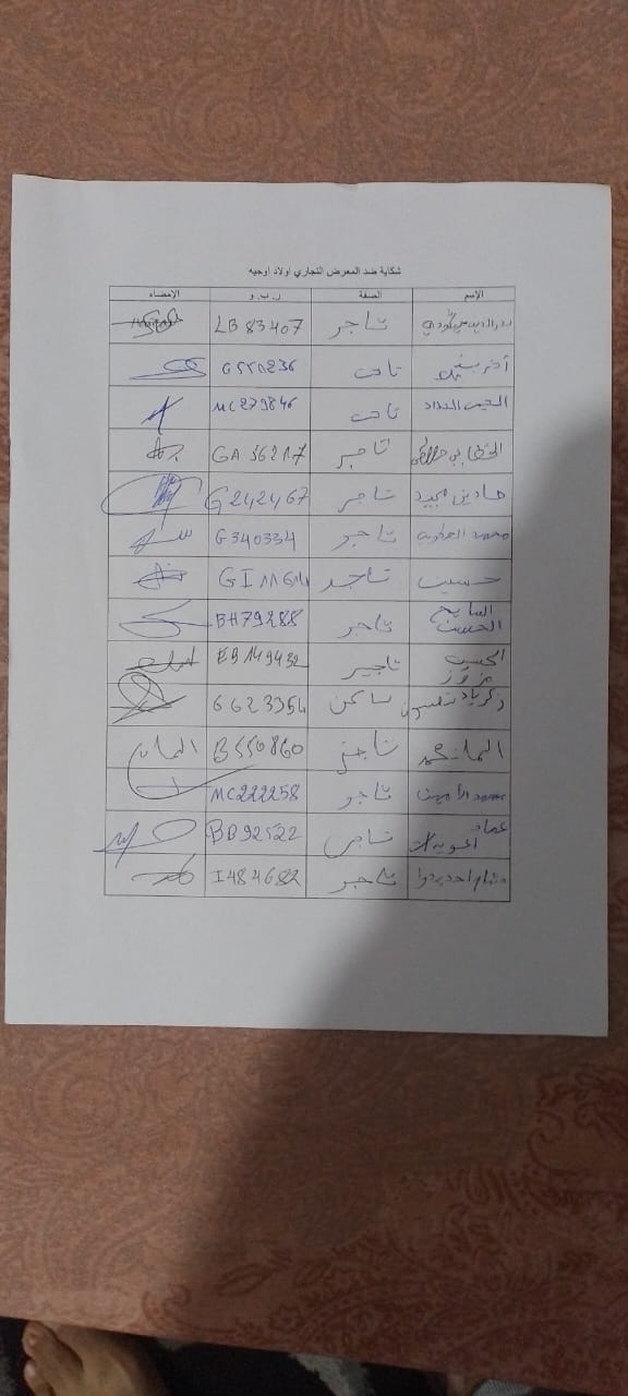 تجار اؤلاد اوجيه يقدمون شكوى لعامل عمالة القنيطرة ضد معرض يمكث لمدة 9 أشهر