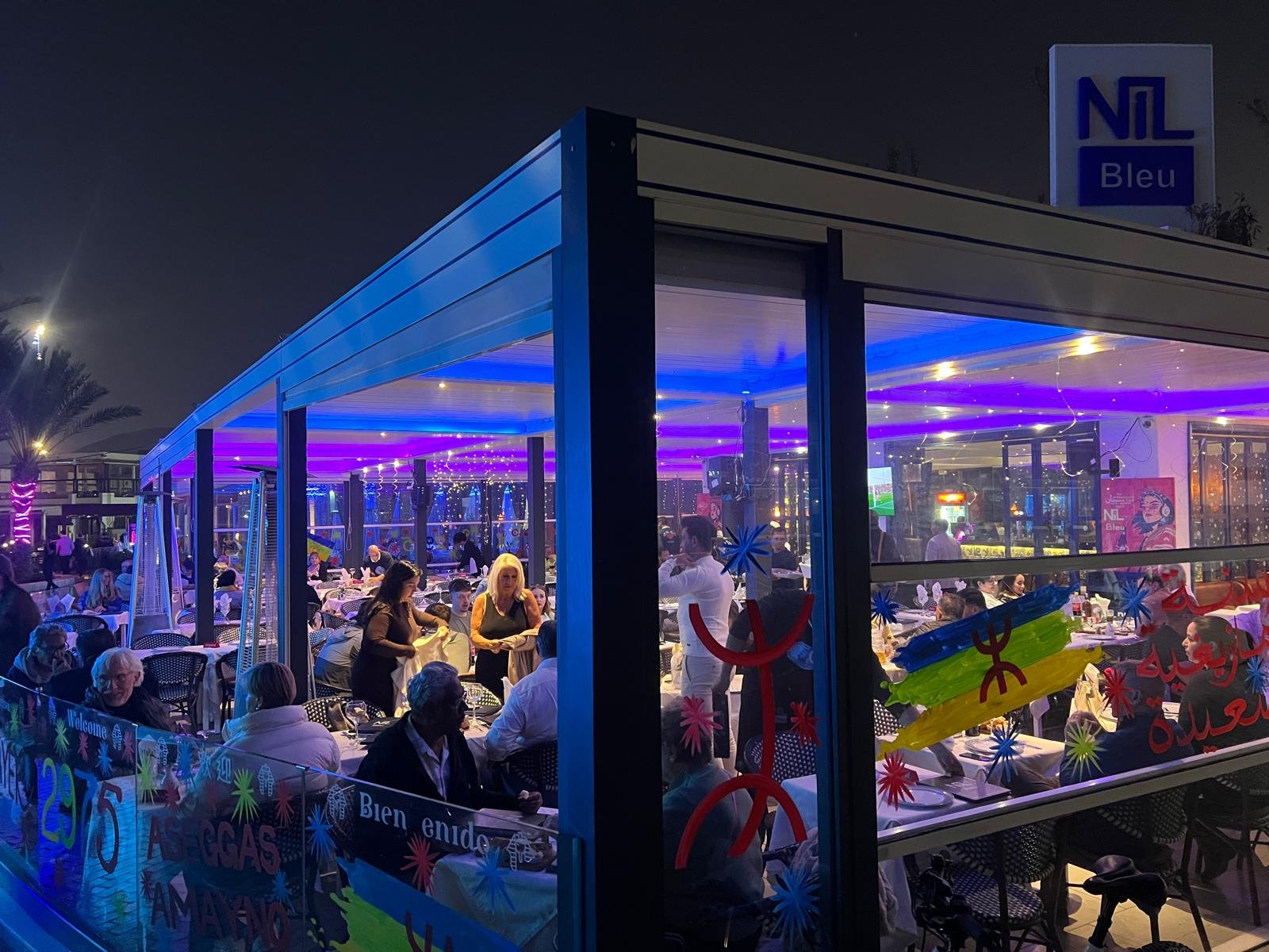 فقد ظهرت كل جنبات مطعم Le Nil Bleu، ليلة أمس الاثنين 13 يناير، مزينة بديكورات ذات طابع أمازيغي وبإضاءات مختلفة الألوان، مما أعطى مظهرا متميزا للمطعم أثار إعجاب مرتادي شاطئ مدينة أكادير.
