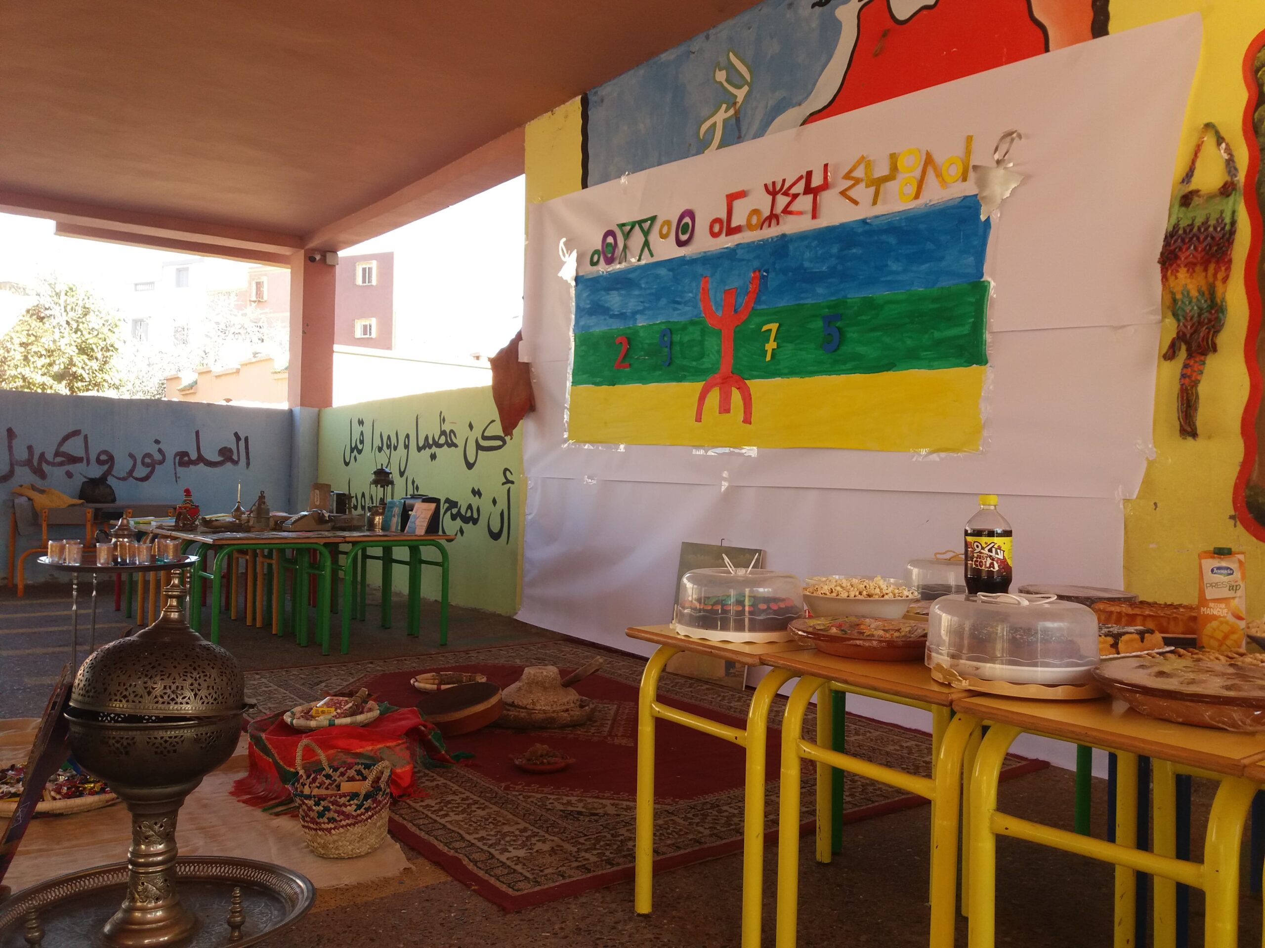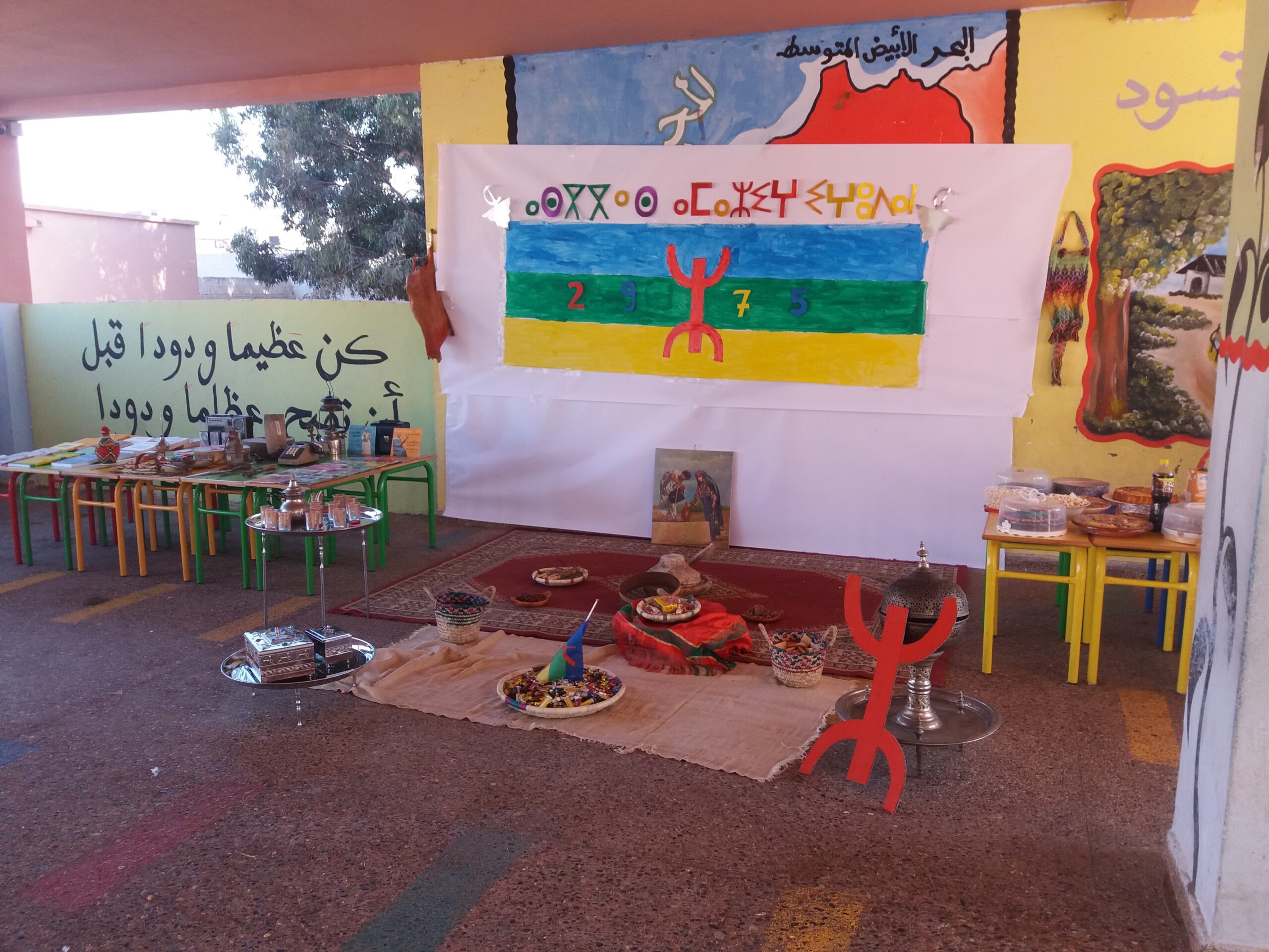 وتميز هذا اليوم الاحتفالي، ببرنامج غني ومتنوع حيث جمع بين ما هو ثقافي من خلال تقديم عرض حول مظاهر ودلالات الاحتفال بالسنة الأمازيغية وما هو تربوي من خلال تنظيم معرض تراثي أمازيغي وتقديم لوحات فنية إبداعية وتراثية من طرف تلميذات وتلاميذ المؤسسة تحت اشراف وتأطير الفريق التربوي بالمؤسسة.