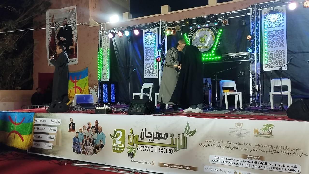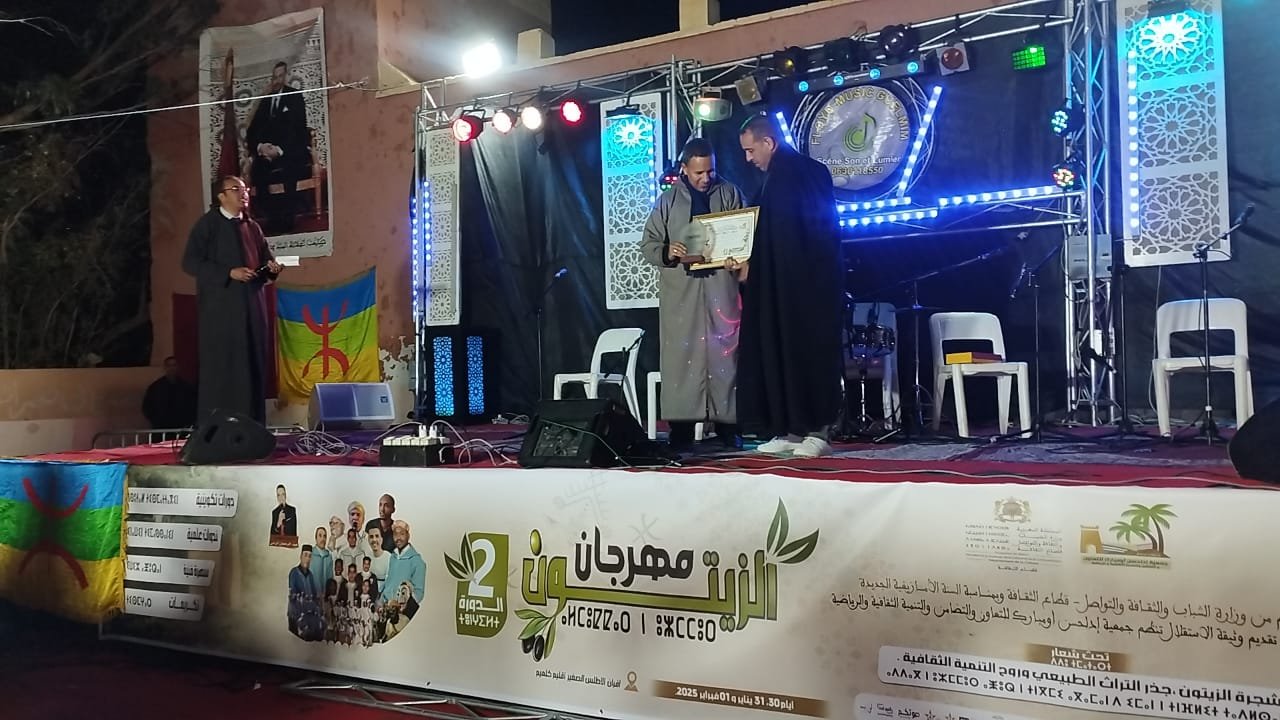 في أجواء احتفالية مميزة بمناسبة السنة الأمازيغية الجديدة وذكرى تقديم وثيقة الاستقلال، نظمت جمعية إدلحسن أو مبارك للتعاون والتضامن والتنمية الثقافية والرياضية الدورة الثانية لمهرجان الزيتون يوم السبت 1 فبراير 2025. وقد تم خلال هذا الحدث تكريم السيد جامع اغرابي، رئيس جماعة تغجيجت، تقديرا لجهوده المتميزة في خدمة المجتمع المحلي وتعزيز القيم الثقافية والرياضية، رغم غيابه عن الحفل.