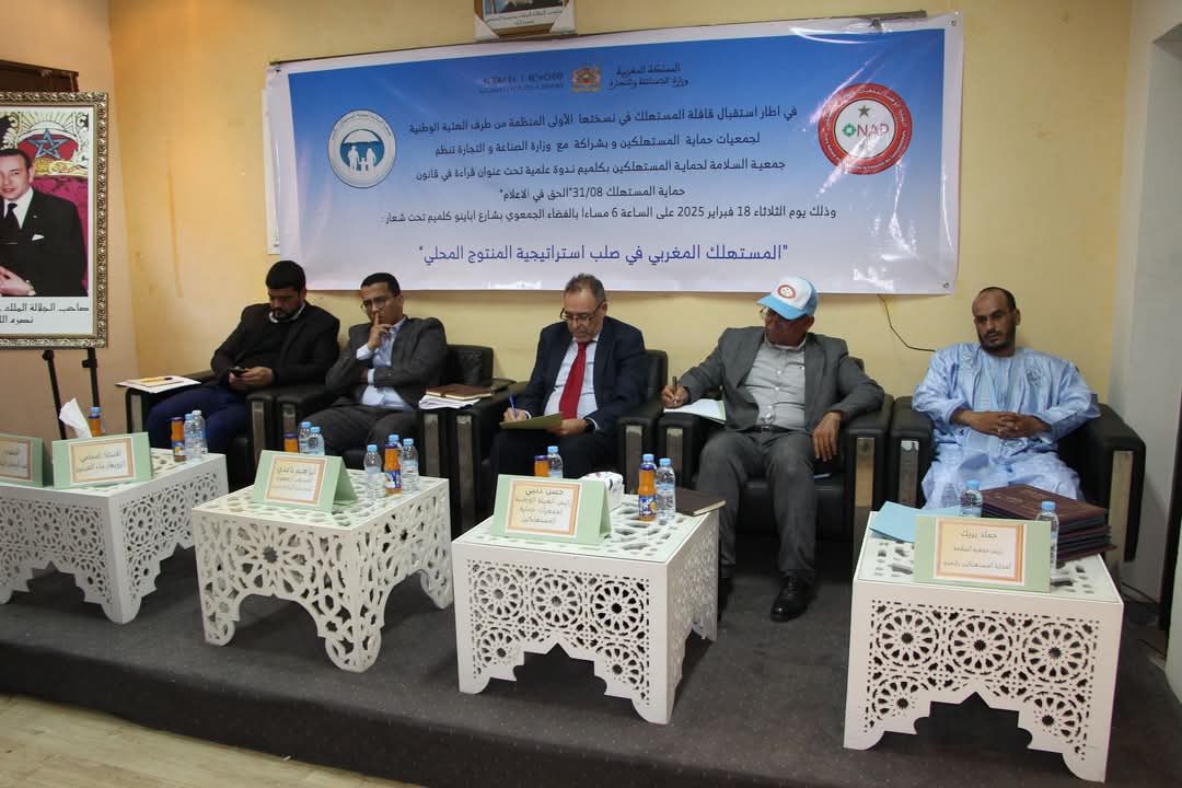 نظمت جمعية السلامة لحماية المستهلكين بكلميم، يوم الثلاثاء 18 فبراير 2025، ندوة علمية تحت عنوان “قراءة في قانون حماية المستهلك 31/08: الحق في الإعلام”، وذلك تحت شعار “المستهلك المغربي في صلب استراتيجية المنتوج المحلي”. وقد شهدت الندوة مشاركة نخبة من الخبراء والمهتمين بحقوق المستهلك، حيث ناقشوا أبعاد القانون وآليات تفعيله لضمان حماية أفضل للمستهلك المغربي.