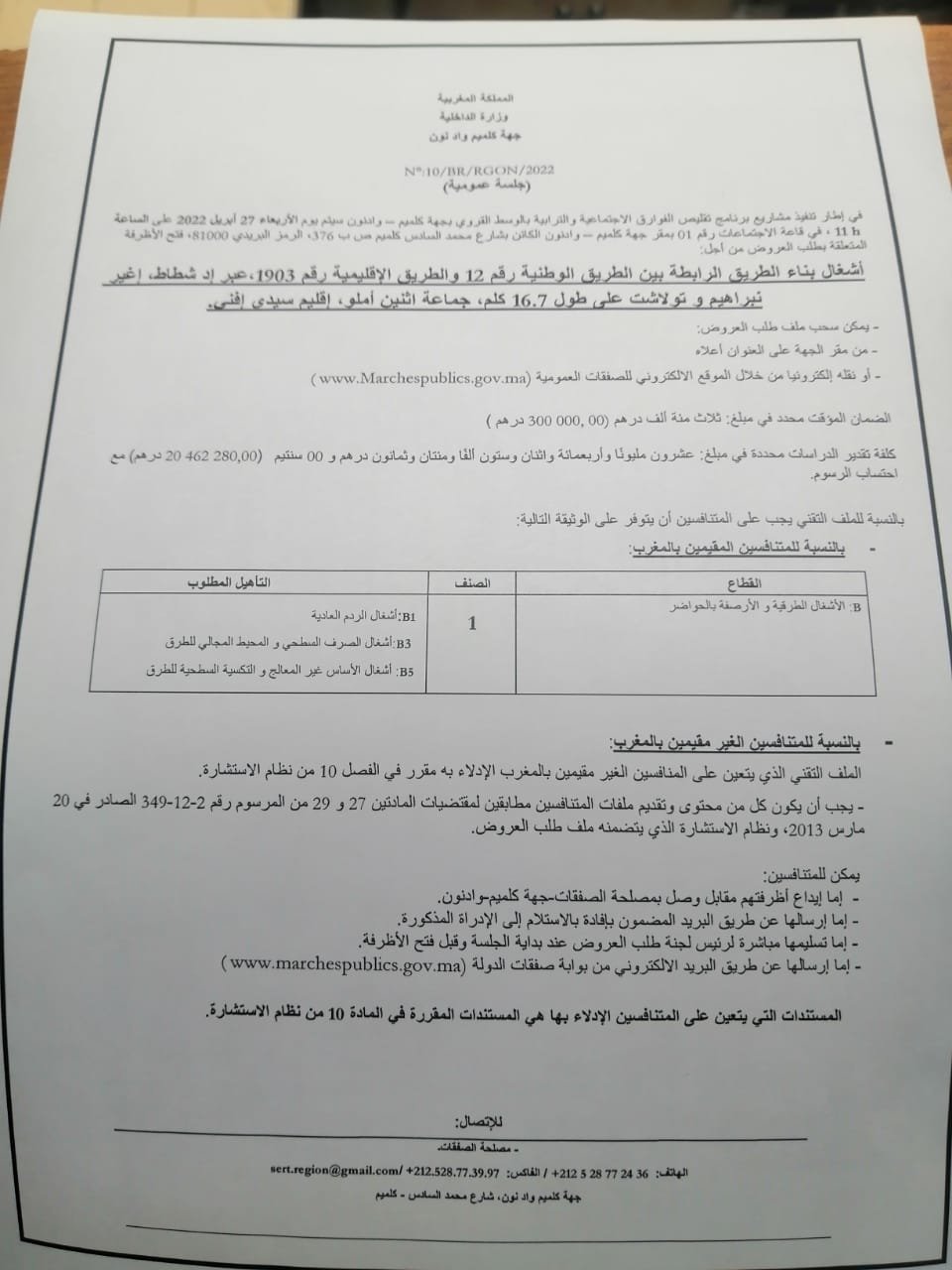 في خطوة تهدف إلى حماية المال العام وضمان جودة المشاريع التنموية، وجهت جمعية “أناروز شمال جنوب” بفرنسا، ملتمسا إلى السيد والي جهة كلميم وادنون تطالب فيه بفتح تحقيق عاجل حول أشغال الطريق الرابطة بين الطريق الوطنية رقم 12 والطريق الإقليمية 1903 بالجماعة الترابية إثنين أملو إقليم سيدي إفني.