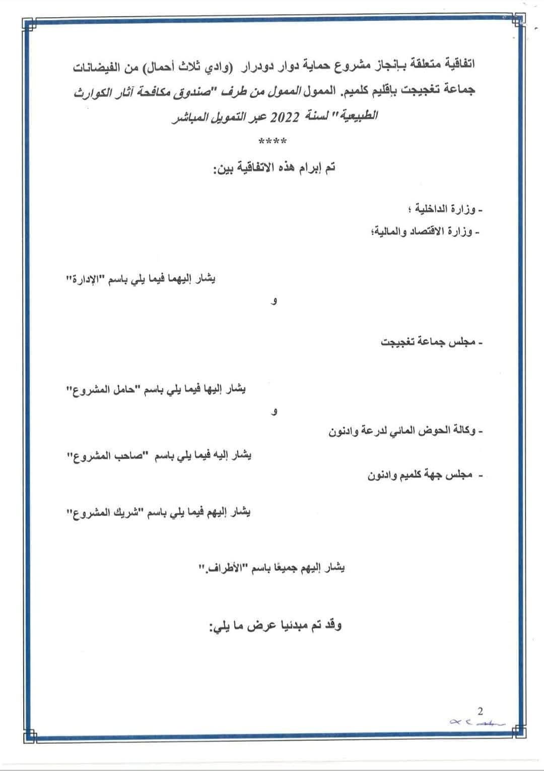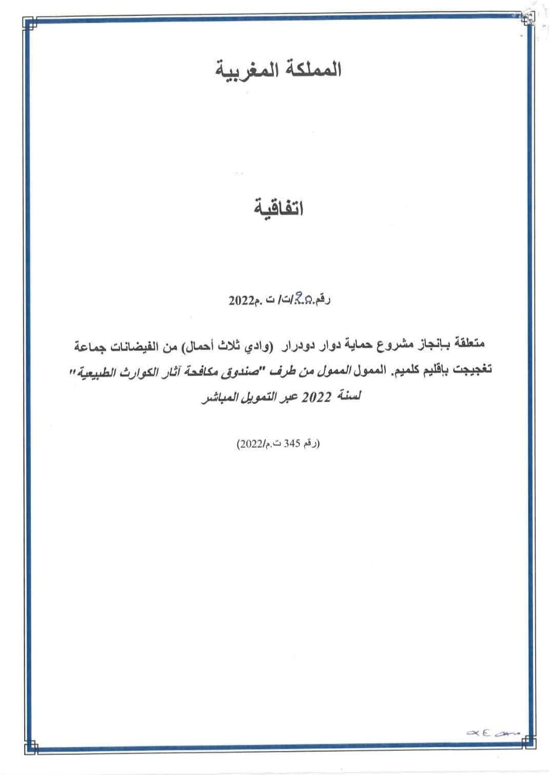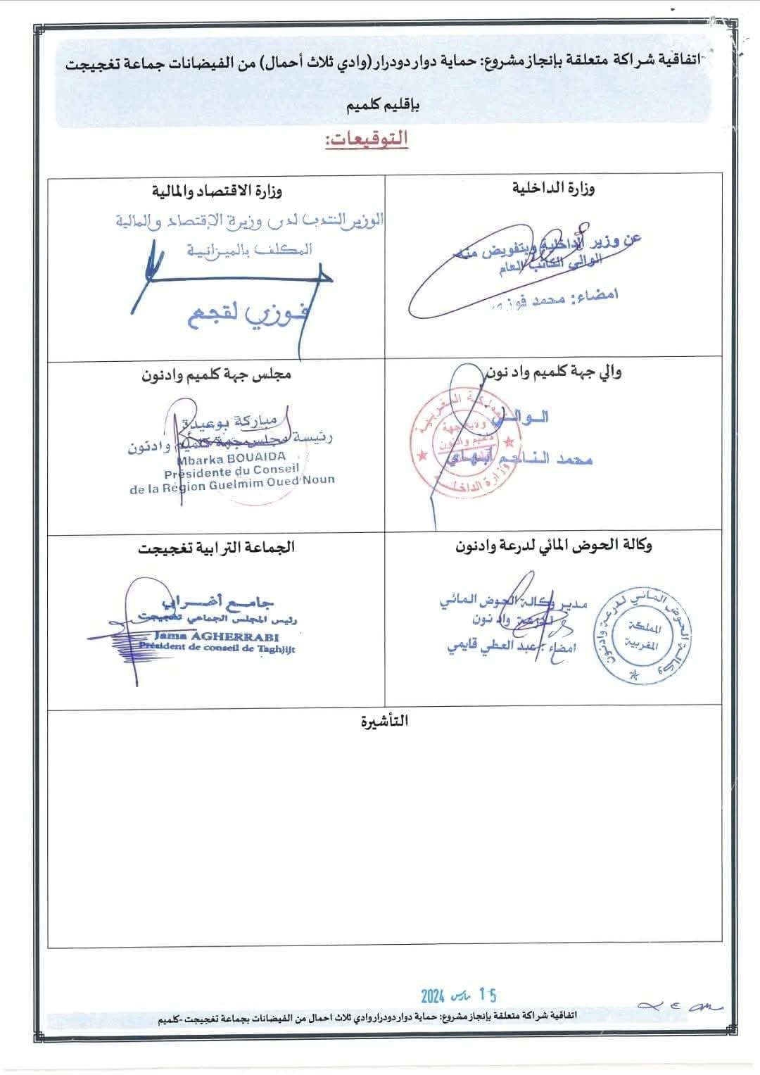 تغجيجت : إتفاقية جديدة لحماية دوار دودرار من الفيضانات بغلاف مالي يفوق 11 مليون درهم