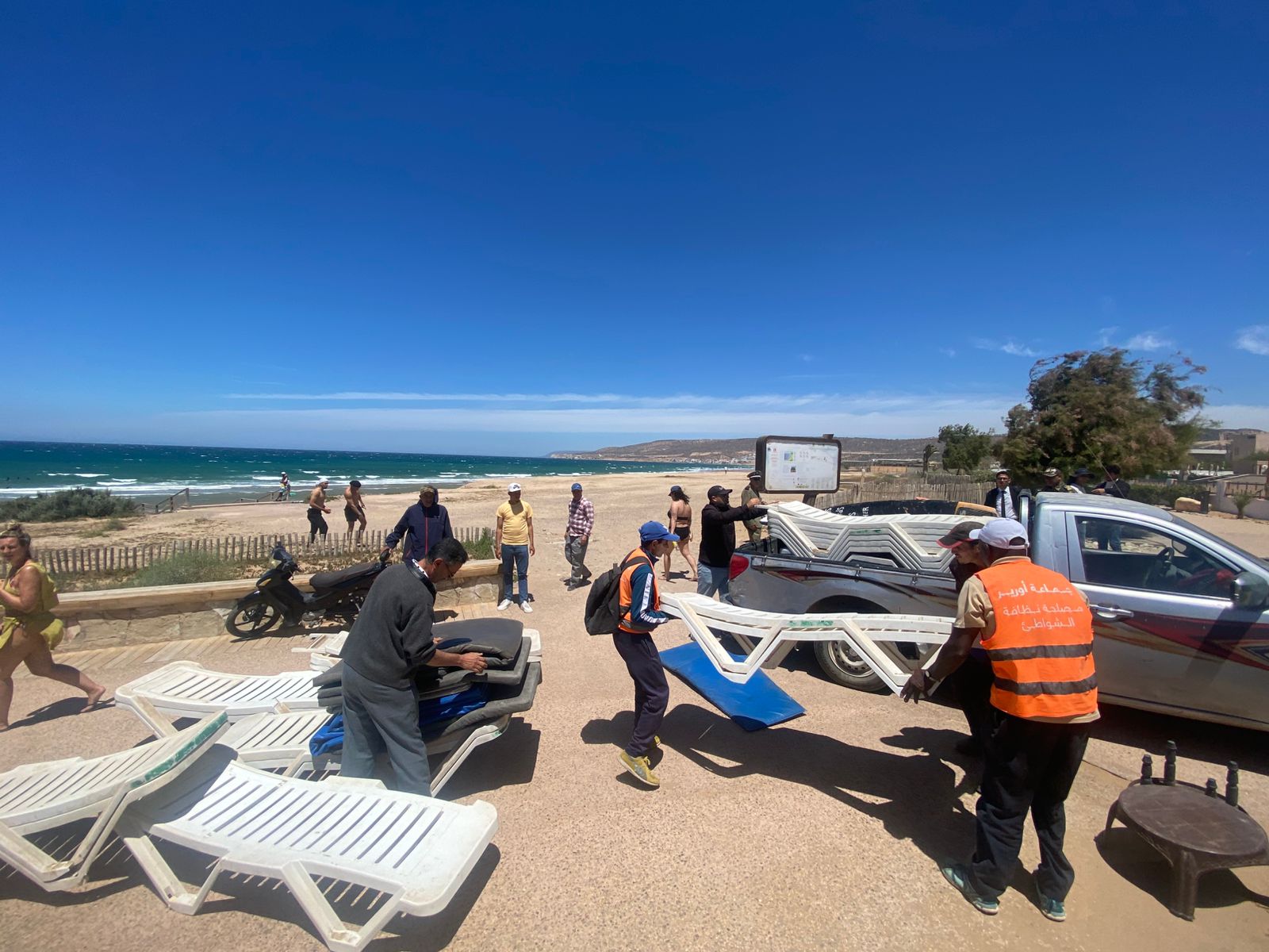 وقد أسفرت هذه الحملة عن حجز كميات من المعدات غير المرخصة، شملت كراسي استرخاء وطاولات، كانت تستغل لأغراض تجارية ومهنية بشكل غير قانوني ودون أي سند قانوني يخول لأصحابها ذلك.