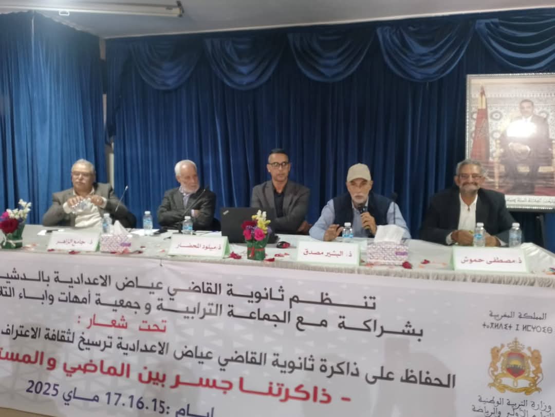 احتضنت ثانوية القاضي عياض الإعدادية بمدينة الدشيرة الجهادية، يوم الخميس 15 ماي الجاري، ندوة فكرية بعنوان: “ذاكرة الدشيرة الجهادية”، وذلك في إطار فعاليات الأيام الربيعية الثالثة التي تنظمها المؤسسة، بتنسيق مع جمعية آباء وأمهات وأولياء التلاميذ.