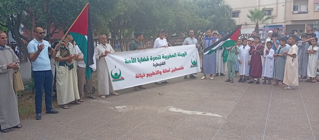 تحت شعار..غزة العزة تباد نظمت مدينة القنيطرة اليوم الجمعة 30 ماي 2025 وقفتين تضامنيتين بمسجد الهدى باولاد اوجيه عقب صلاة الجمعة.. وحي الاندلس الساكنية امام مسجد انس بن مالك وذلك في إطار جمعة طوفان الاقصى 78 وقد ردد المشاركون شعارات منددة بالمجازر الوحشية المستمرة في حق المدنيين العزل في غزة وباستمرار مسلسل التطبيع مع العدو كما عبرو ا عن مساندتهم للمقاومة الباسلةوكدا صبر الشعب الغزوي واختتمت هذه الوقفات بالدعاء للمقاومة والشهداء والمصابين