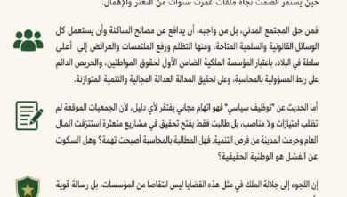 وعليه، فإنني أهيب بكم التدخل السريع واتخاذ الإجراءات اللازمة لوضع حد لهذه السلوكيات وضمان حسن تدبير مرافق المسجد بما يليق بحرمة بيوت الله، خدمةً للمصلين وحفظاً لكرامة هذا الفضاء الروحي.