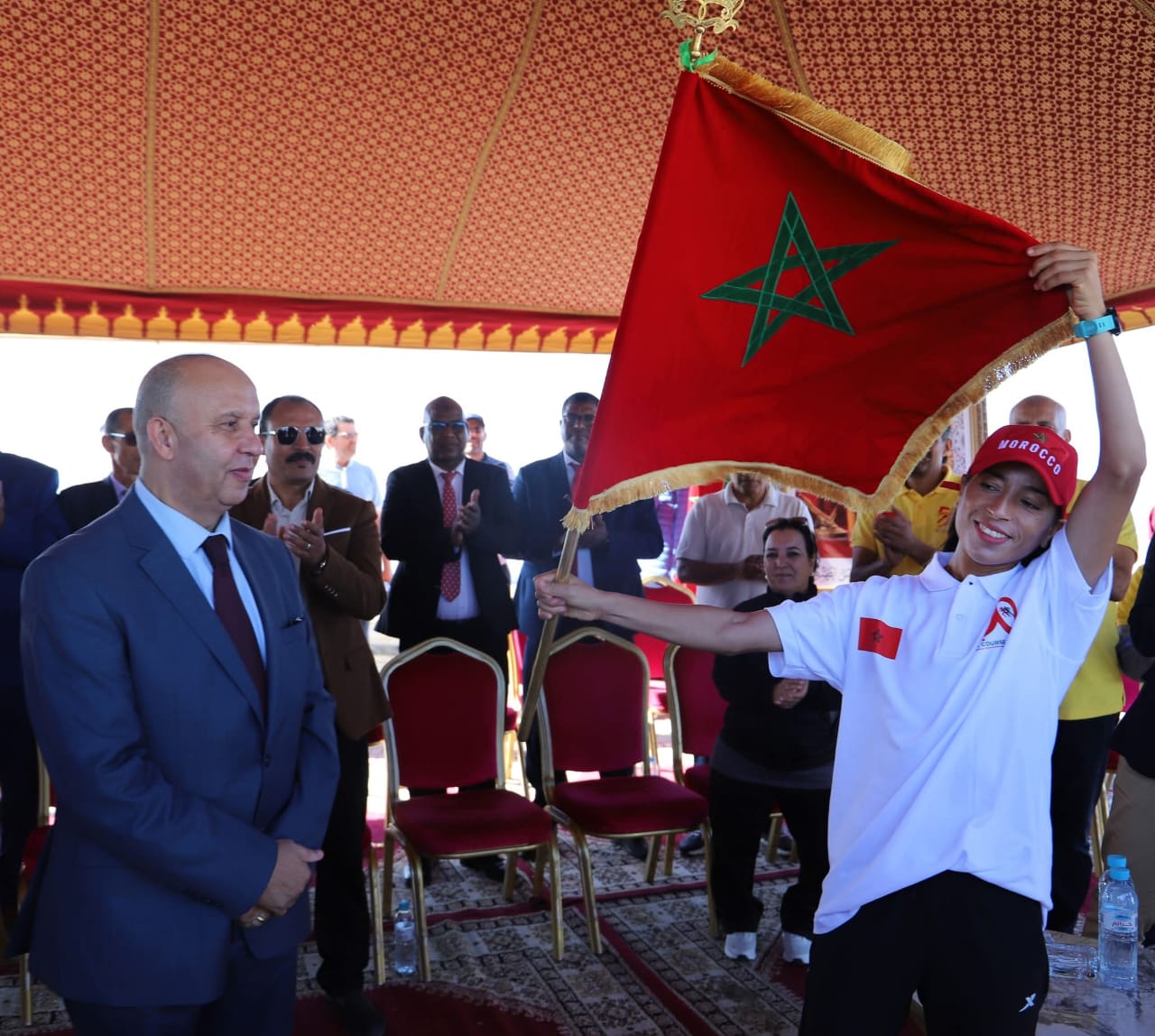 فبعد تسلمه العلم الوطني من شريفة مسكاوي، البطلة السابقة في ألعاب القوى ( السباعي) ، وإحدى المنطوعات المشاركات في المسيرة الخضراء الخالدة عام 1975، التي حملت العلم الوطتي خلال المرحلة الخامسة ( الجديدة- آسفي) ، قام الكاتب العام لعمالةإقليم آسفي بتسليم العلم الوطني لفاطمة الزهراء كردادي ، المنحدرة من مدينة آسفي، الفائزة بالميدالية البرونزية في سباق الماراثون ضمن بطولة العالم بودابيست 2023.
