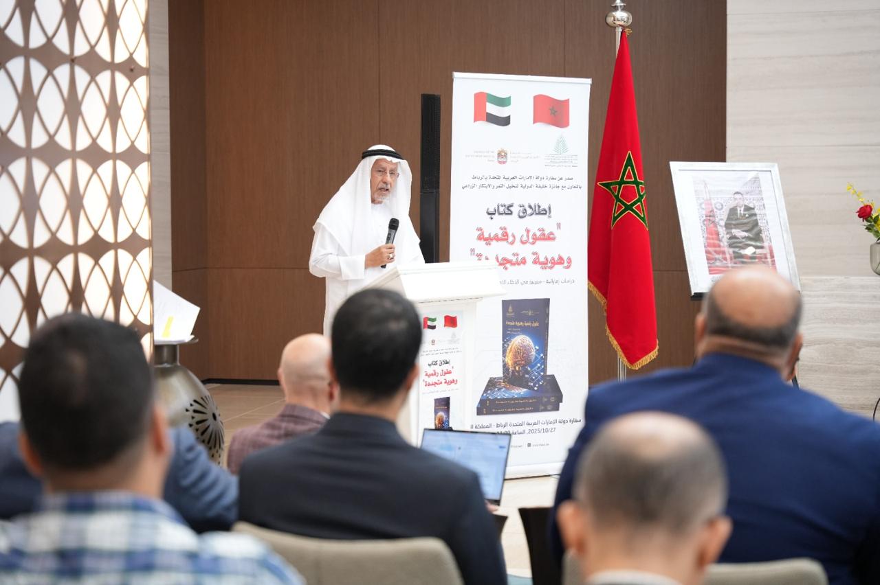 شهد مقر سفارة دولة الإمارات العربية المتحدة في المملكة المغربية، صباح يوم الاثنين 27 أكتوبر 2025، حفل إطلاق كتاب (عقول رقمية وهوية متجددة، دراسات إماراتية مغربية في الذكاء الاصطناعي والابتكار)، بحضور السيد/ ثاني سالم الرميثي عضو البعثة نيابة عن العصري سعيد الظاهري، سفير دولة الإمارات العربية المتحدة بالرباط، و الأستاذ الدكتور عبد الوهاب البخاري زائد، أمين عام جائزة خليفة الدولية لنخيل التمر والابتكار الزراعي، التابعة لمؤسسة إرث زايد الإنساني بديوان الرئاسة بدولة الإمارات العربية المتحدة، و الدكتور سالم بن محمد المالك، المدير العام لمنظمة العالم الإسلامي للتربية والعلوم والثقافة (إيسيسكو) ونخبة من الدبلوماسيين والأكاديميين والباحثين والخبراء من البلدين الشقيقين.