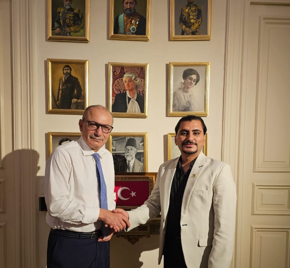 السفير التركي بالقاهرة صالح موطلو شن يستقبل عبدالوهاب كرم الحلوي في لقاء رفيع المستوى داخل مقر السفارة