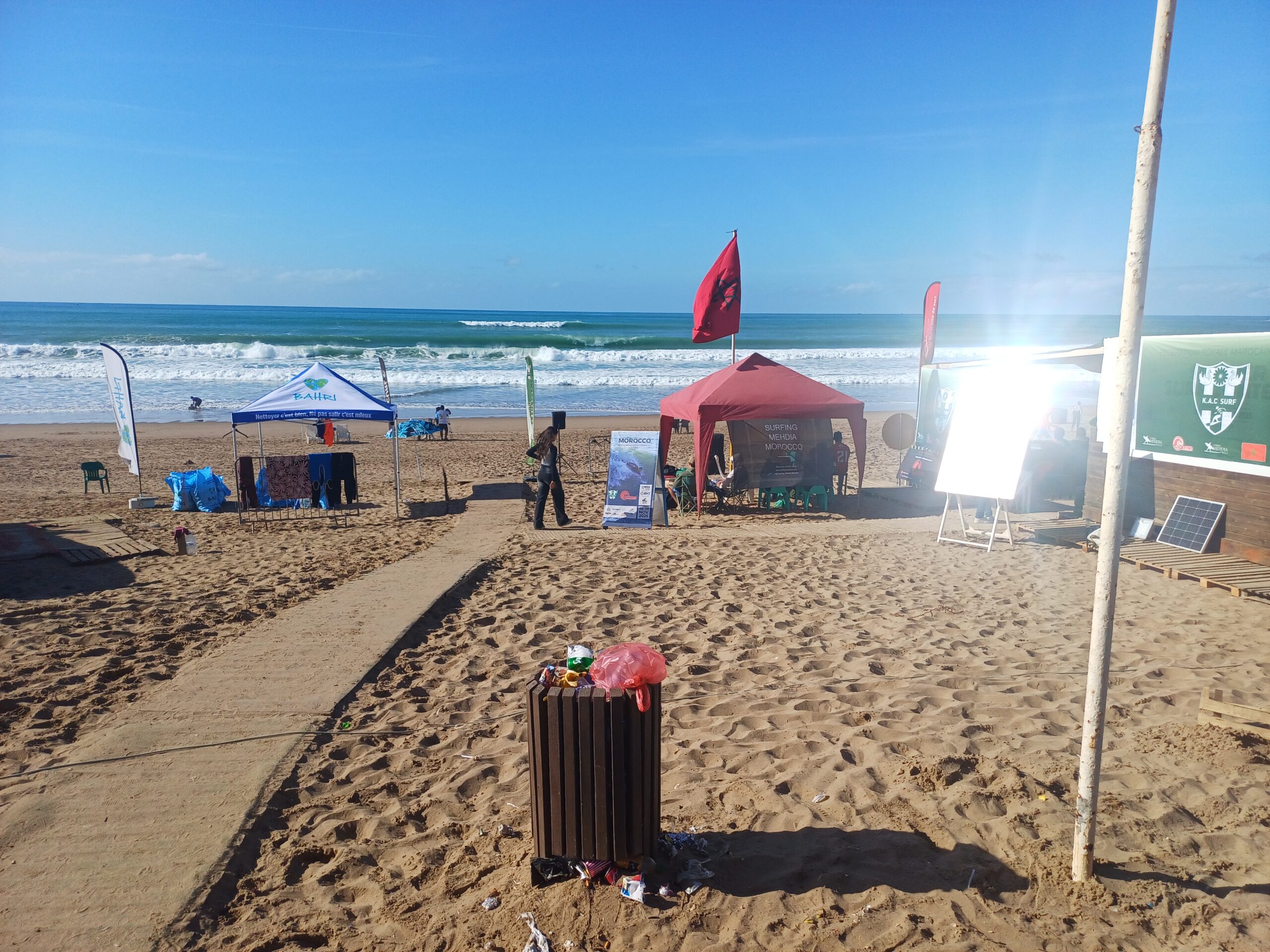 الحدث الرياضي الدولي احتضنه نادي المهدية لركوب الأمواج (KAC Surf) بشراكة مع هيئات بيئية وسياحية، من بينها مبادرة “Bahri” التي نصبت خيامًا توعوية لحماية البيئة الساحلية تحت شعار: «التنظيف جيد، لكن عدم التلويث أفضل».