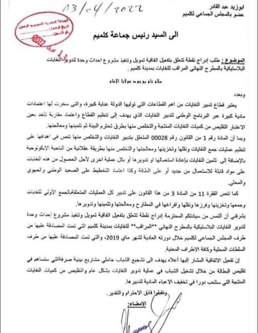 مستشار جماعي بكلميم يسائل النائب الثاني للرئيس حول مآل اتفاقية تدبير قطاع النظافة