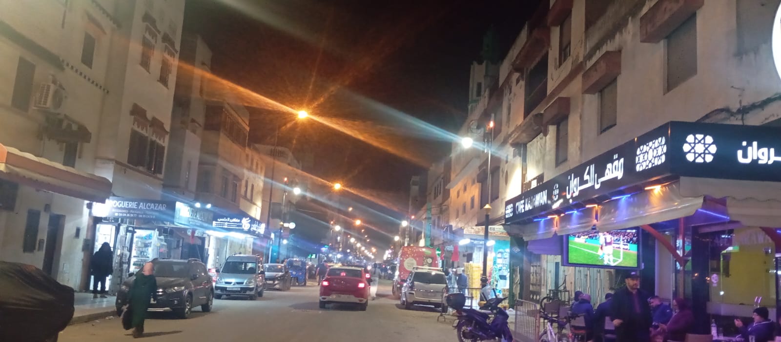 القصر الكبير : شارع عبد المالك السعدي (دوار العسكر) يكتسي حلة جديدة بعد تطوير الإضاءة، والمطالبة بتعميم الإصلاحات على المدينة بأكملها.