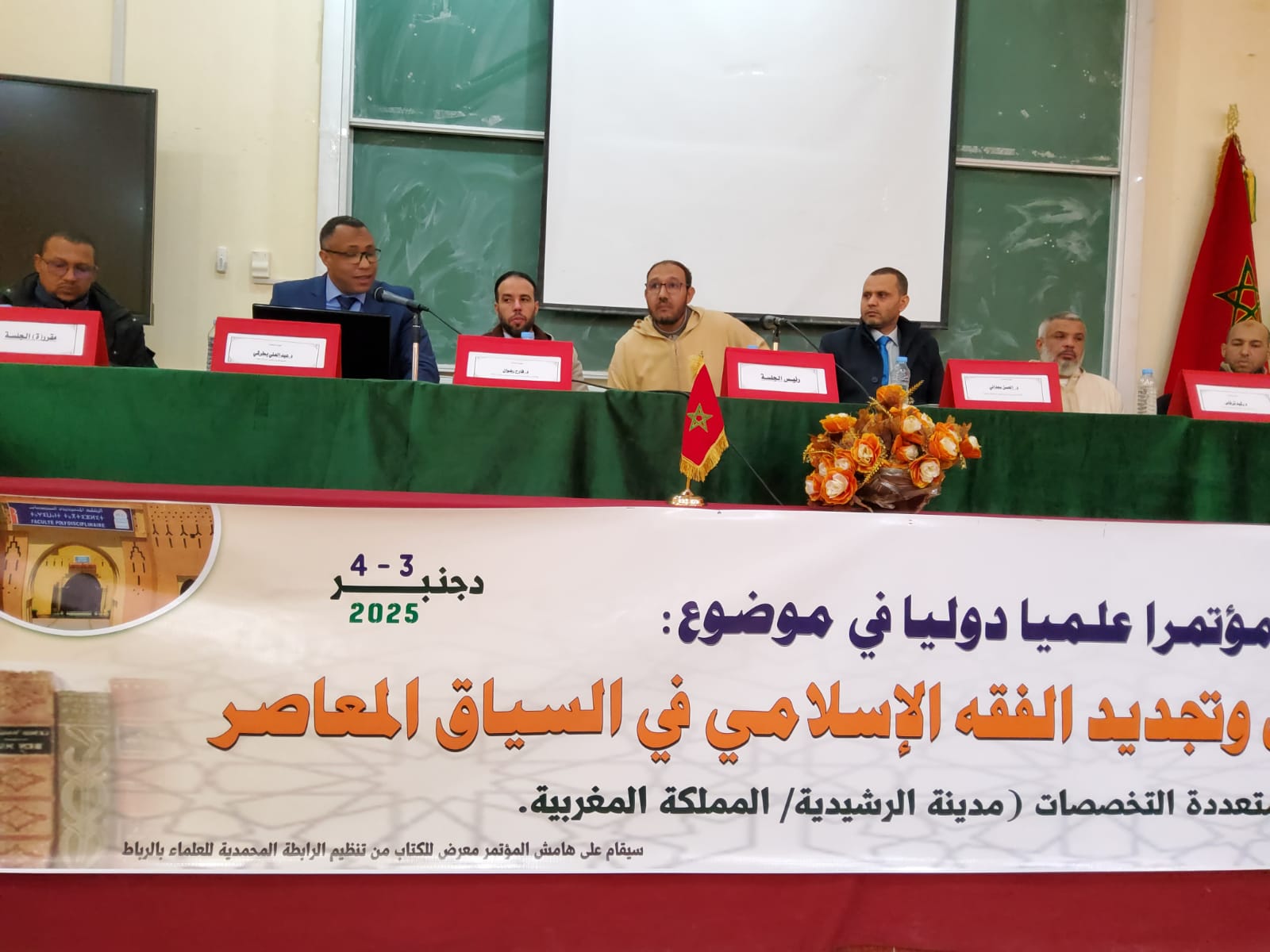 تواصلت يوم الخميس 4 دجنبر 2025 بالكلية المتعددة التخصصات بالرشيدية أشغال المؤتمر العلمي الدولي حول الاجتهاد المقاصدي وتجديد الفقه الإسلامي في السياق المعاصر، في أجواء اتسمت بكثافة الحضور وتنوع المداخلات، حيث امتلأت القاعة بالباحثين والطلبة والمهتمين.