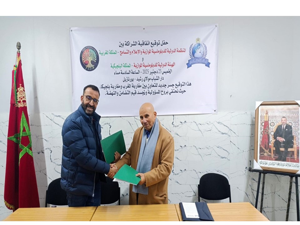 في أجواء مفعمة بالاعتزاز والانتماء، احتضنت مؤسسة دار الشباب مولاي رشيد – بورنازيل يوم الخميس 25 ديسمبر 2025 حدثاً استثنائياً سيظل راسخاً في ذاكرة العمل المدني والدبلوماسي الموازي، حيث جرى توقيع اتفاقية شراكة استراتيجية بين المنظمة الدولية للدبلوماسية الموازية والإعلام والتسامح بالمملكة المغربية، والهيئة الدولية للدبلوماسية الموازية بالمملكة البلجيكية. وقد شكّل هذا اللقاء محطة مضيئة في مسار التعاون بين المؤسستين، ورسالة قوية بأن الدبلوماسية الموازية ليست مجرد مفهوم نظري، بل ممارسة حية قادرة على مد جسور التواصل بين الشعوب، وتعزيز قيم التضامن والنهضة المشتركة.