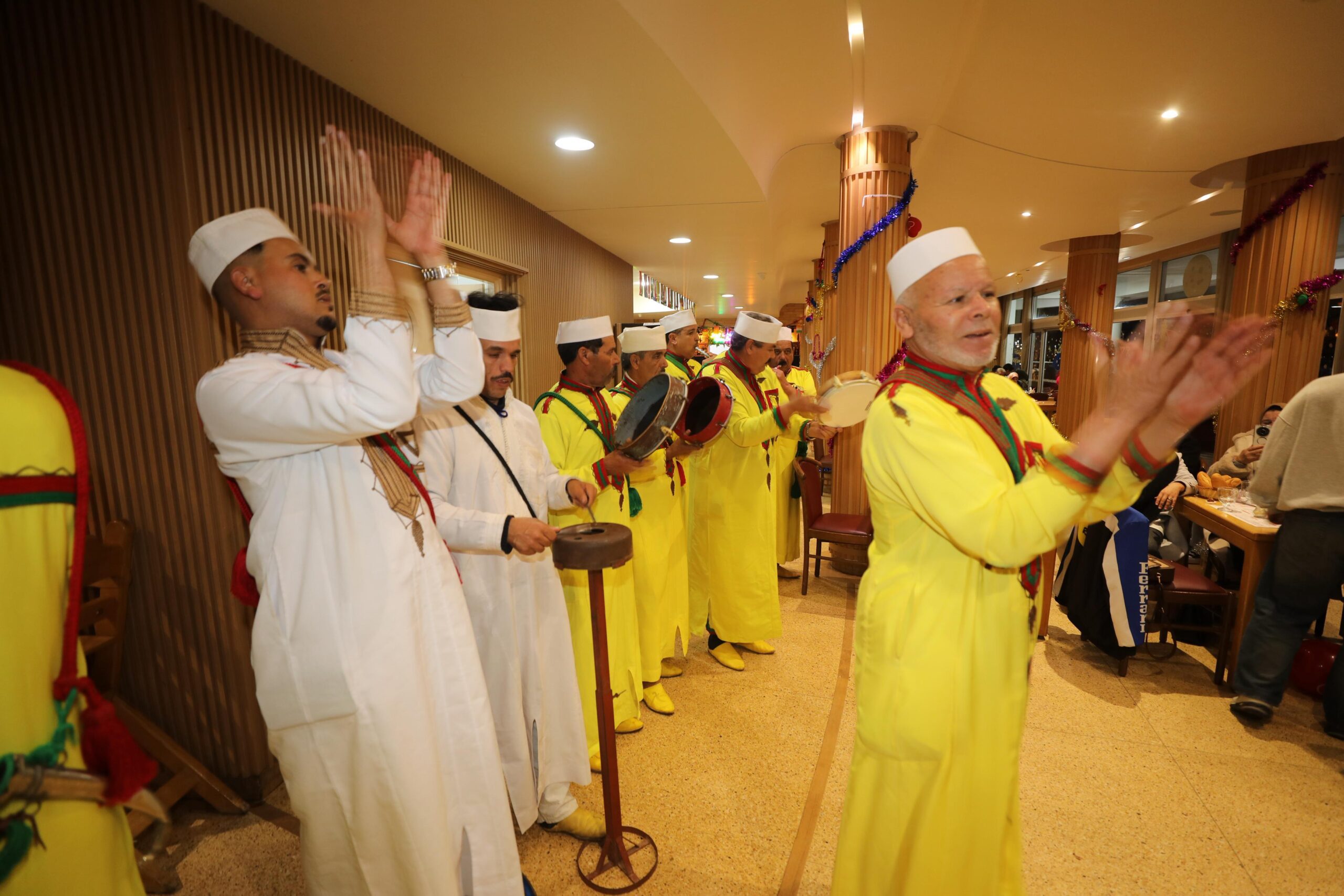 ولهذه الغاية وغيرها ،فتحت إدارة ذات المطعم أبوابها للجميع فاستقبلت الساكنة وزوار اكادير بكل أطيافهم ،من أجل تقريب هذا الاحتفال للمواطنين وتقاسمه مع السائحين المتوافدين على المطعم ،الذين أبهروا بهذا الموروث والاحتفاء ،فاستمتعوا بوصلات فلكلورية أمازيغية وطبق فني تألق من خلاله مجموعة من الروايس ،فضلا عن تذوق طبق ” تاكلا “، كأكلة تهيئ من الدرة تقدم مع زيت الأركان أو أملو ،ويدس بها علفة الثمر “أغرمي “.