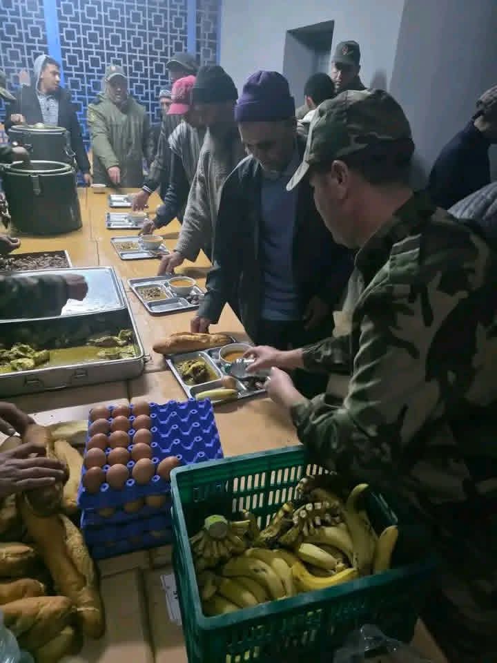 القصر الكبير – في إطار العناية السامية التي يوليها صاحب الجلالة الملك محمد السادس نصره الله للمواطنين، باشرت عناصر القوات المسلحة الملكية، بتنسيق مع عناصر القوات المساعدة، عمليات تقديم وجبات غذائية للساكنة المتضررة من الفيضانات بمراكز الإيواء التابعة لجماعة سوق الطلبة بضواحي مدينة القصر الكبير.