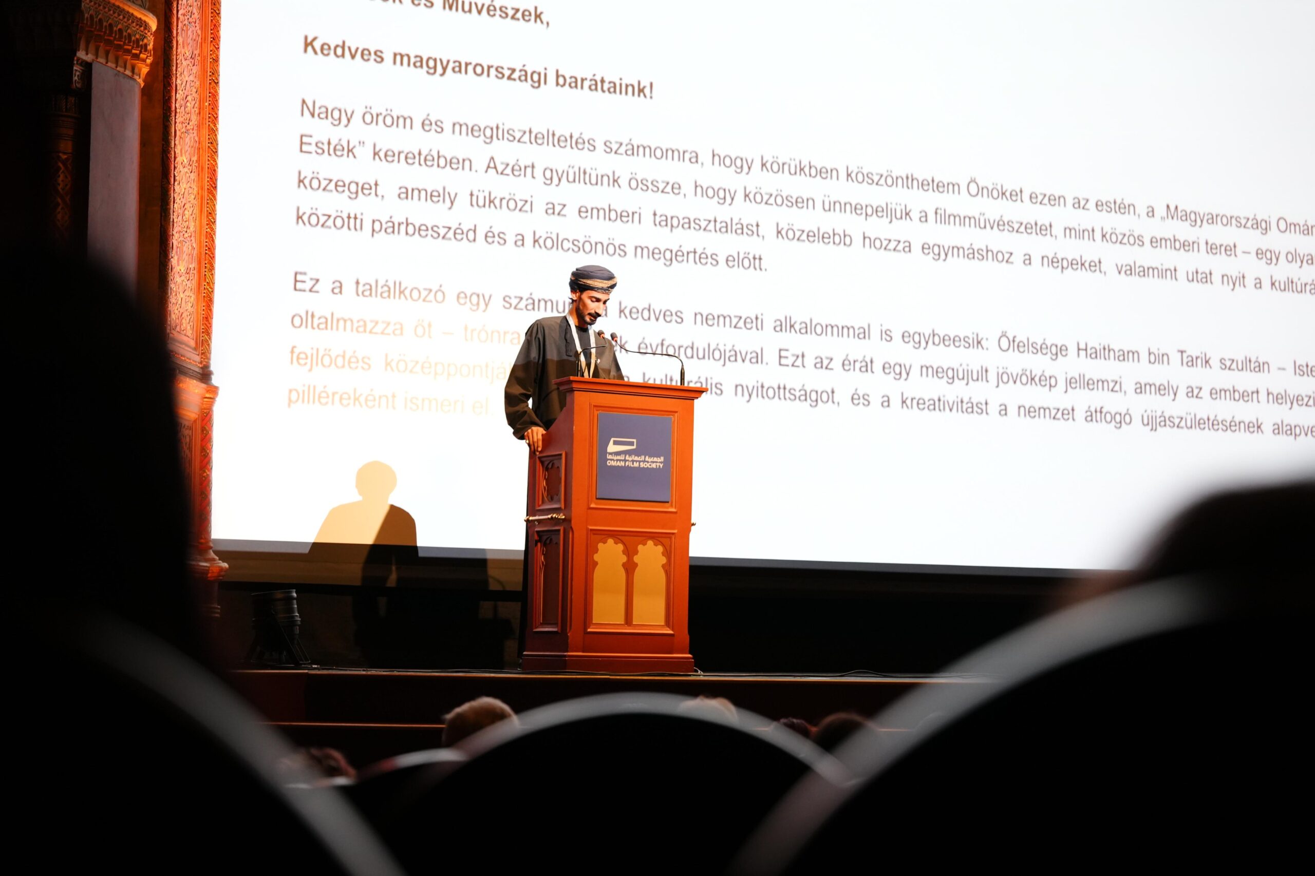 وتضمّنت الاحتفالية والتي اقيمت في المسرح السينمائي الوطني ( أورانيا) كلمة لسعادة السفير، عبّر فيها عن سعادته بمشاركة الثقافة العُمانية ونمط الحياة والتراث الغني مع الجمهور المجري، مؤكدًا أهمية فتح آفاق جديدة للتبادل الإبداعي والتعاون الثقافي. وأشار إلى أن السينما تؤدي دورًا حيويًا في تعزيز الفهم والحوار والتسامح بين الشعوب، معربًا عن أمله بأن يشكّل هذا اللقاء انطلاقة لعلاقات مثمرة وبدايات لشراكات مستقبلية تسهم في إثراء المشهد الثقافي والسينمائي عالميًا.