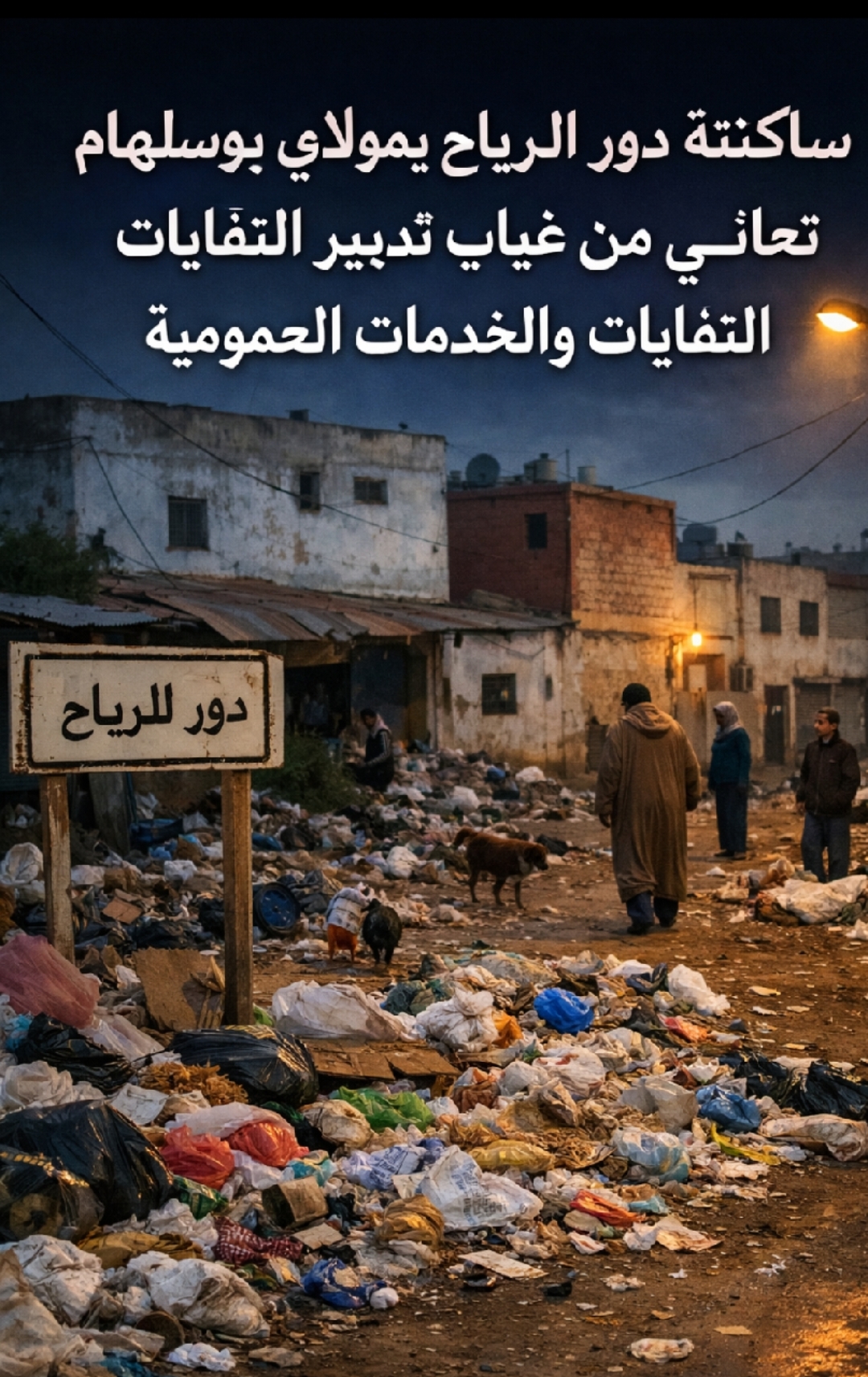 تعيش ساكنة دور الرياح وضعية صعبة نتيجة غياب تدبير النفايات والهشاشة العامة للبنية التحتية. النفايات متراكمة في كل مكان، والحي يعاني من انتشار الأزبال بشكل عشوائي، بينما المجلس المحلي غائب تمامًا عن متابعة الوضع.