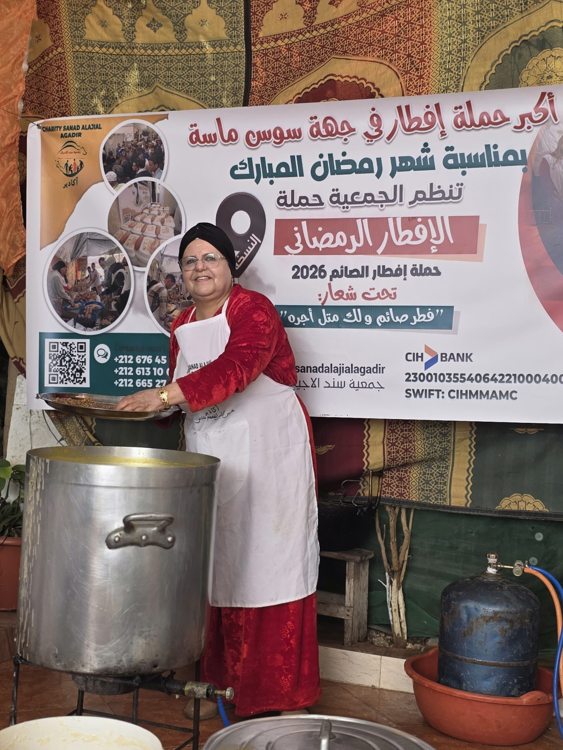 في إحدى زوايا مدينة أكادير، لا يعلو قبل أذان المغرب سوى همس الدعاء وترتيب الصحون استعدادا للحظة الإفطار. هناك، تواصل جمعية سند الأجيال تنظيم إفطارها الجماعي خلال شهر رمضان 1447 هـ، في مبادرة تحمل شعار “فطر صائم ولك مثل أجره”.