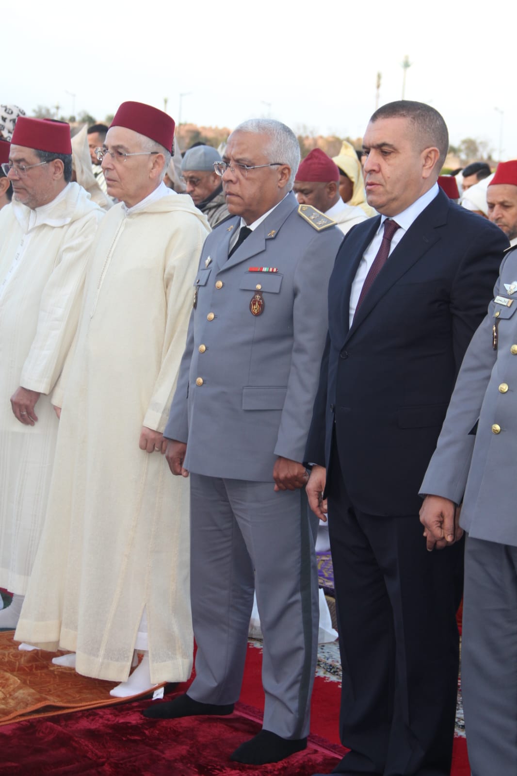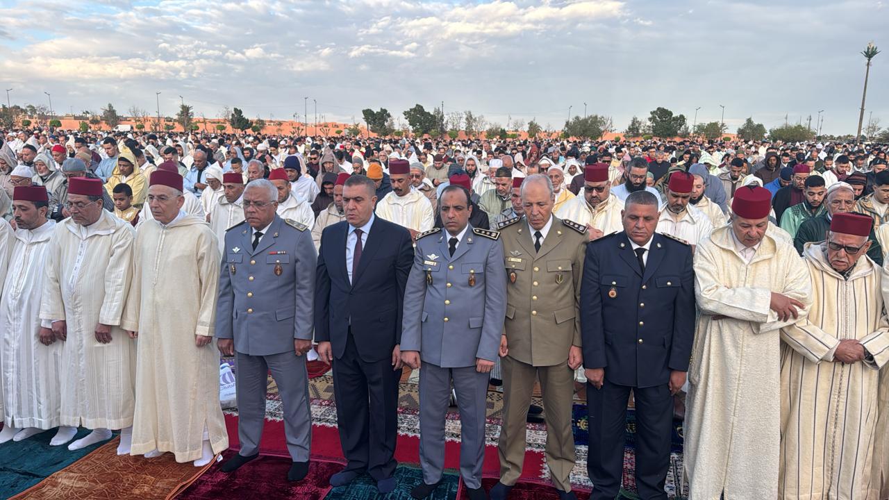 وتقدم جموع المصلين والي جهة مراكش-آسفي، خطيب الهبيل مرفوقا بوفد رسمي ضم الكاتب العام لولاية الجهة ووالي أمن مراكش ومسؤولين من الدرك الملكي إلى جانب رئيس المجلس العلمي المحلي ومندوب الشؤون الإسلامية.