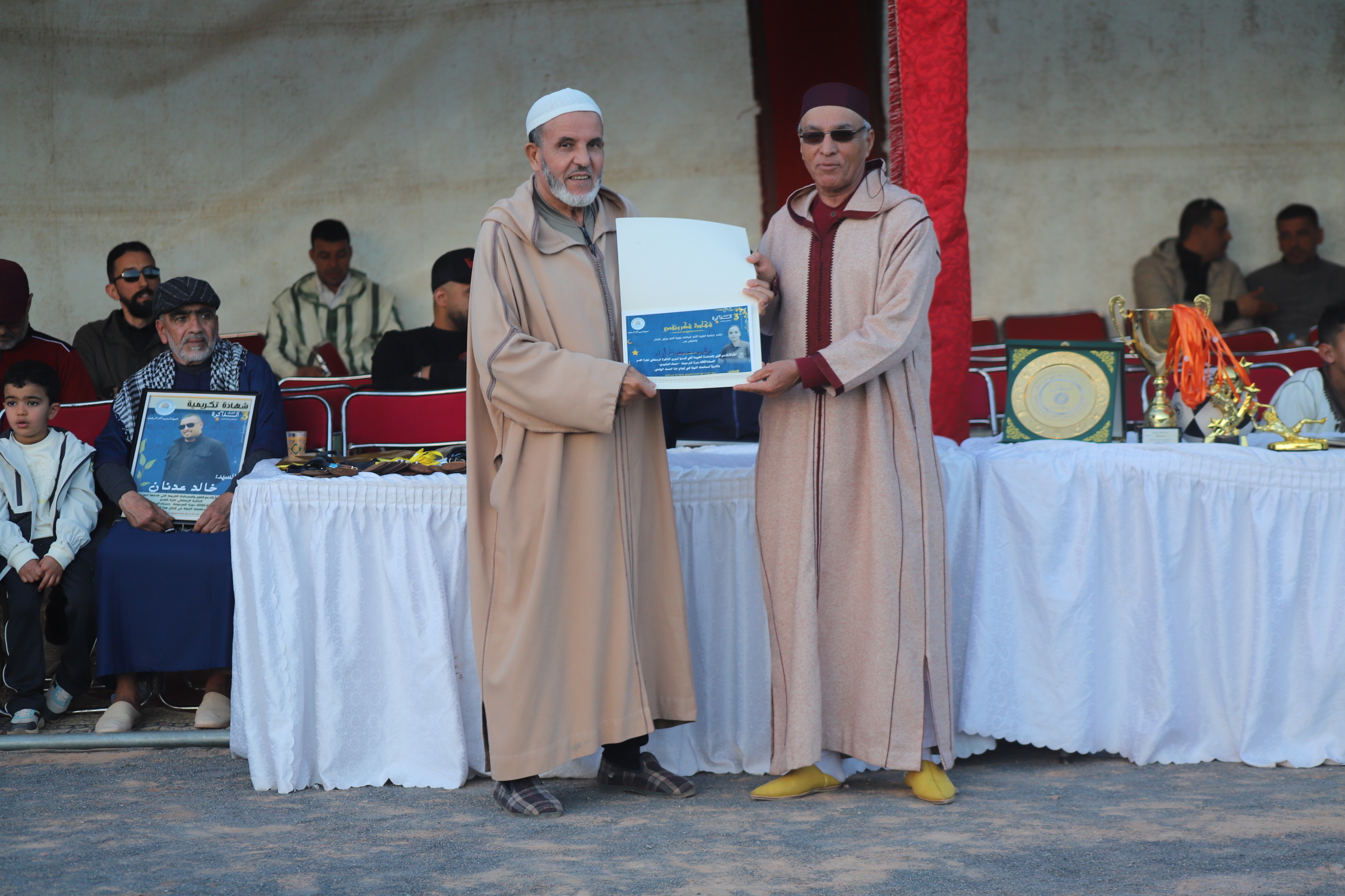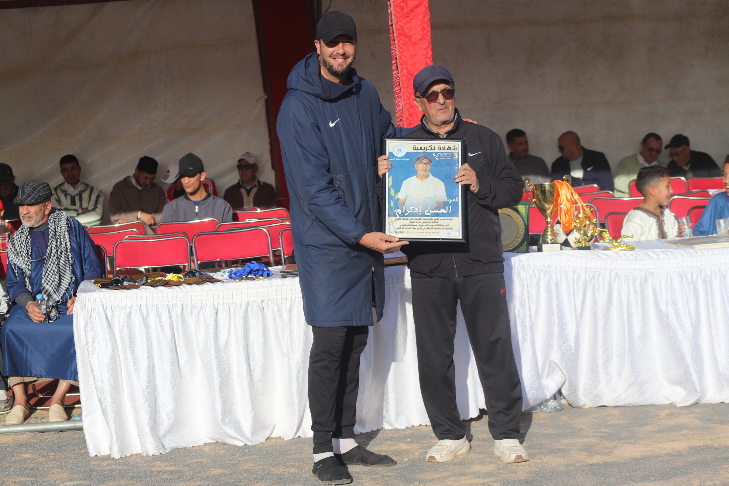 وعلى هامش هذا الحدث الرياضي، قامت الجمعية المنظمة بتكريم عدد من الشخصيات المحلية اعترافا بمجهوداتهم في دعم الرياضة، كما تم تكريم عائلة المرحومة حسناء الساعيدي في لحظة مؤثرة تعكس روح الوفاء والتقدير.