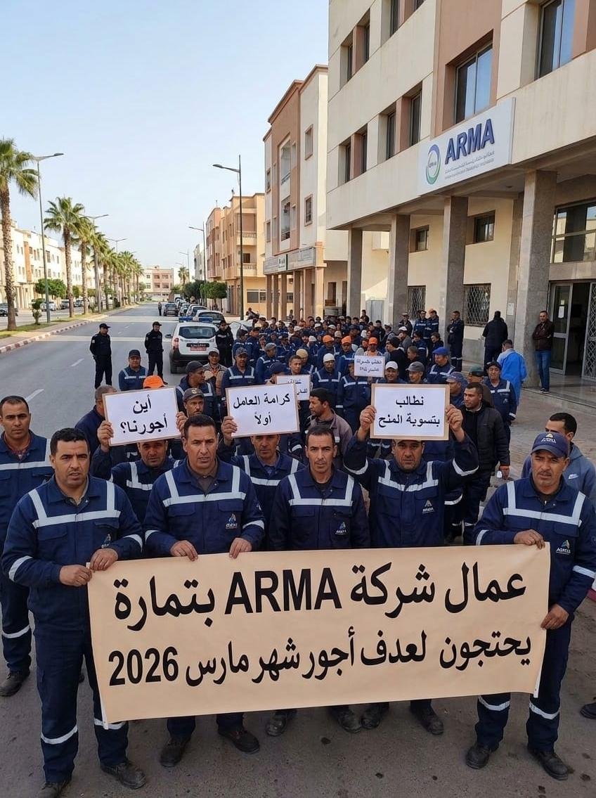 في بيان شديد اللهجة موجّه إلى رئيس جماعة تمارة، كشف المكتب النقابي عن حجم المعاناة التي يعيشها العمال ، ولم يكن البيان مجرد إشعار بالإضراب، بل صرخة استغاثة تصف “مآسي اجتماعية خطيرة” تعيشها هذه الفئة وأسرها، نتيجة عدم صرف أجور شهر مارس 2026، إضافة إلى تأخر المنح السنوية ومنح الأطر العالقة بذمة الشركة.