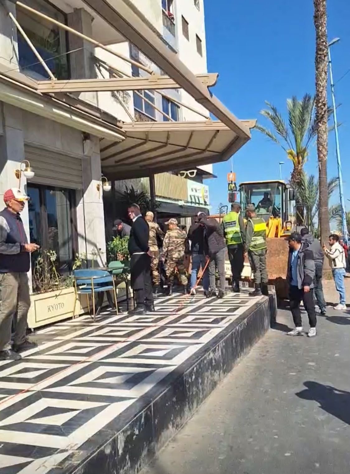واستهدفت الحملة أحد أشهر المقاهي بالمنطقة، والمعروف باسم “كيوطو”، والذي كان يستغل الرصيف العمومي منذ مدة، من خلال وضع الكراسي والطاولات بشكل يعرقل حركة المارة ويؤثر على السير العادي للحياة اليومية.