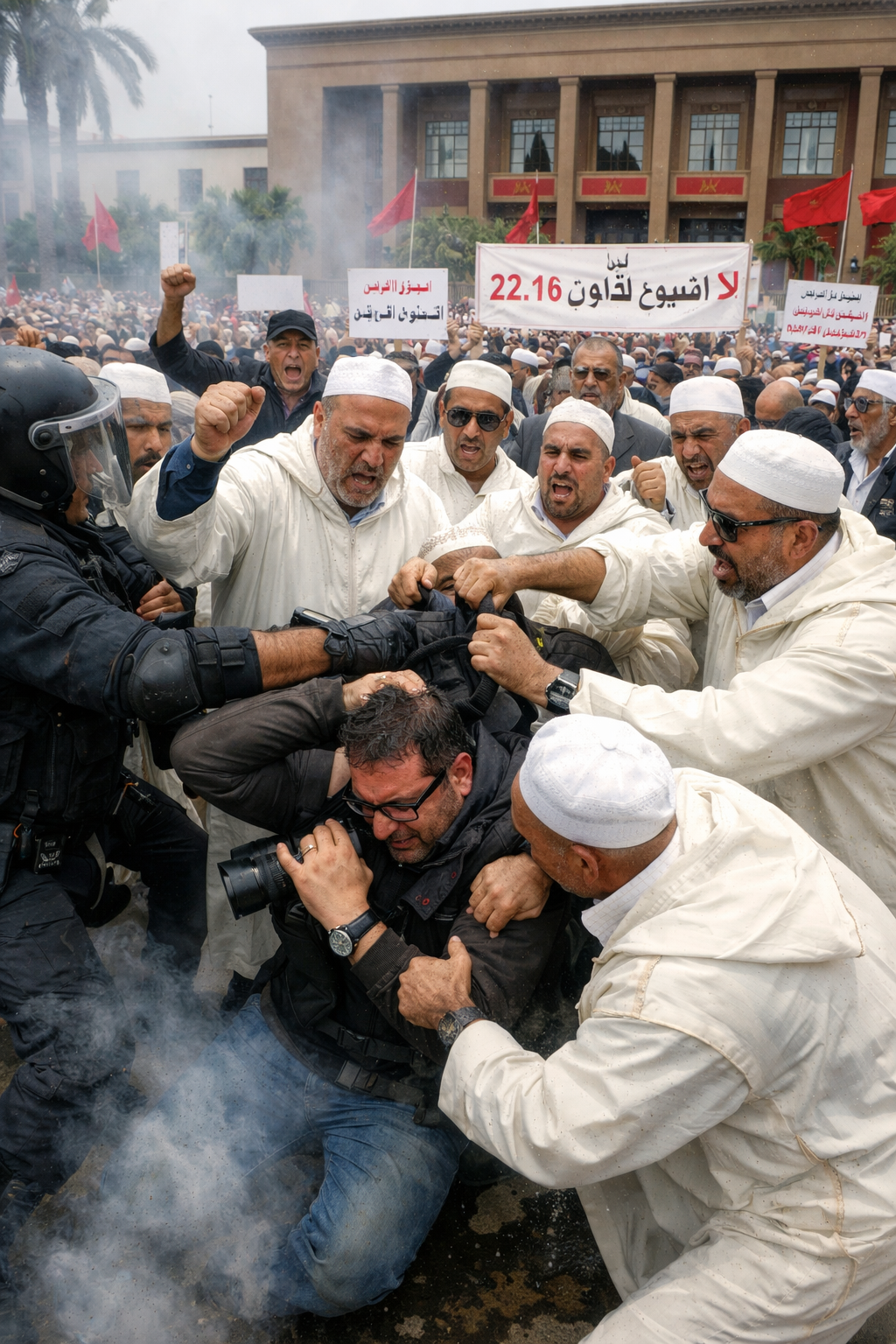 فوضى احتجاج العدول أمام البرلمان تتحول إلى اعتداء على صحافي وتكشف أزمة تدبير مشروع قانون 16.22