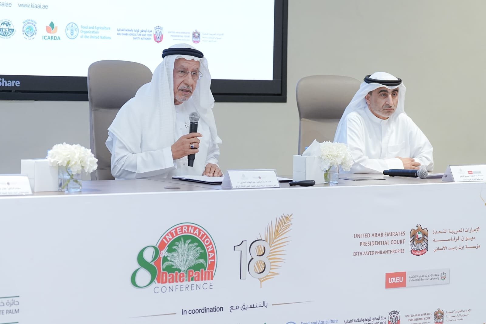 كما أعرب أمين عام الجائزة عن تقديره لجميع المشاركين في المؤتمر الدولي الثامن لنخيل التمر الذي سيعقد في قصر الإمارات بأبوظبي، خلال الفترة 28 ابريل لغاية 01 مايو 2026، مشيراً إلى أن المؤتمر سوف يتضمن جلسة رئيسية رفيعة المستوى مخصصة لأصحاب القرار بمشاركة أصحاب المعالي وزراء الزراعة المدعوين، وعدد من مدراء المنظمات الإقليمية والدولية. بالإضافة الى خمس جلسات علمية موزعة على أيام المؤتمر.