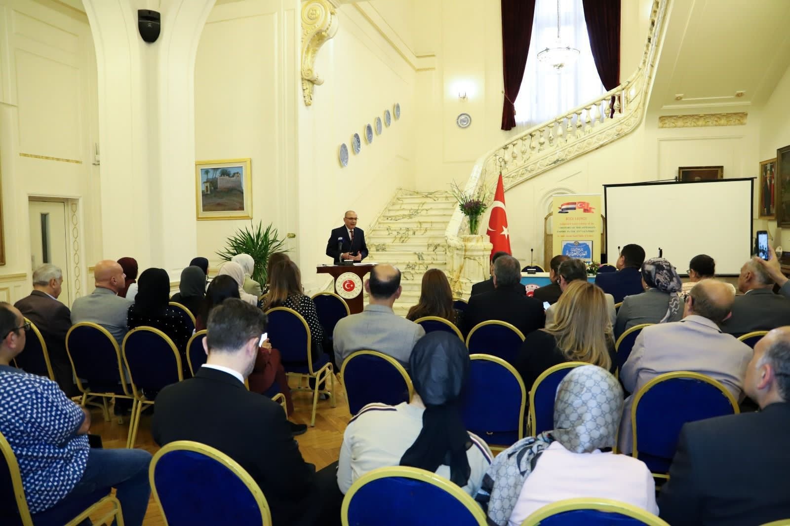 اقامت سفارة تركيا بالقاهر امسية ثقافية احتفالا بتدشين كتاب “التاريخ السياسي للدولة العلية العثمانية”، المترجم إلى اللغة العربية وهو أحد المؤلفات الهامة التي كتبها الصدر الأعظم العثماني “كامل باشا القبرصي” في القرن التاسع عشر، وذلك بحضور كوكبة من الأكاديميين والمؤرخين والصحفيين .