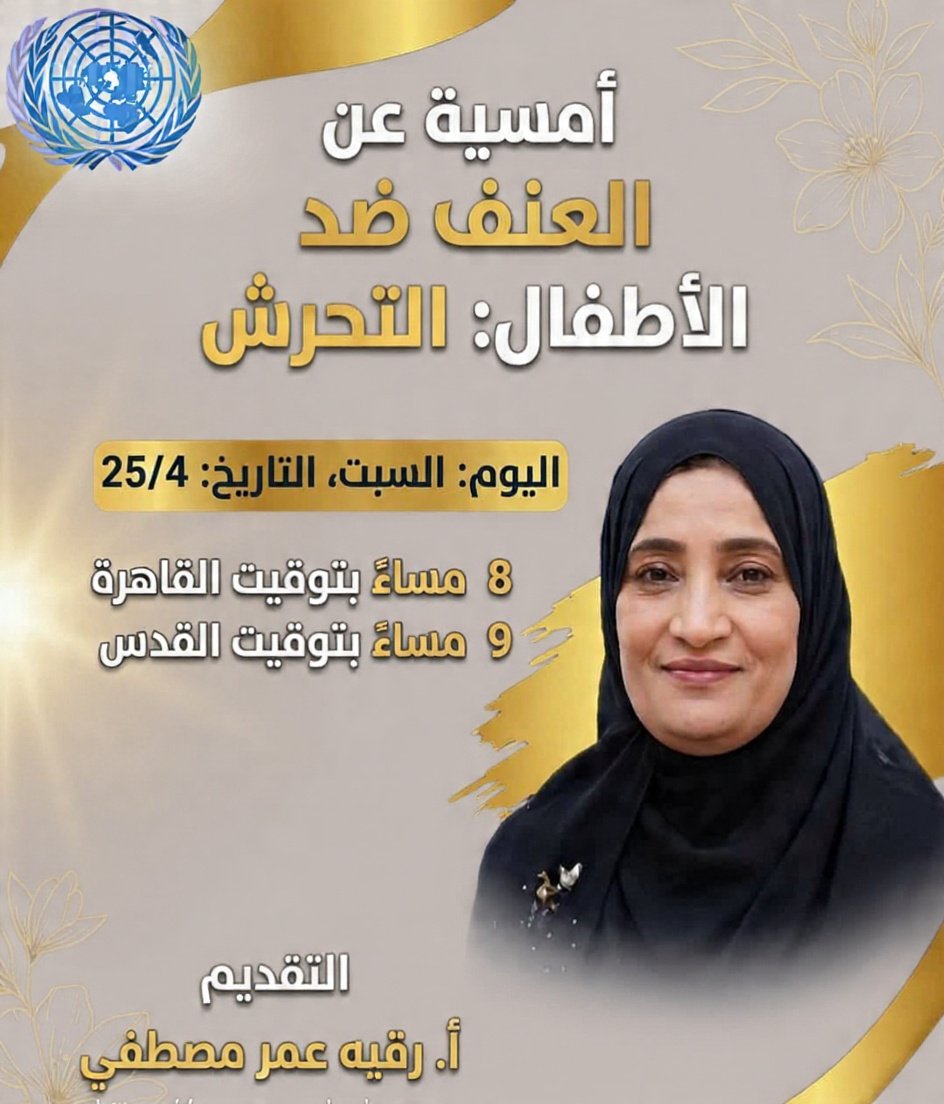 في زمن لم يعد فيه الفضاء الرقمي مجرد مساحة للترفيه، بل تحول إلى جبهة حقيقية للدفاع عن القضايا الإنسانية، نظمت منظمة الأمم المتحدة للخدمات الإنسانية والتنمية أمسية توعوية افتراضية عبر Zoom مساء السبت 25 أبريل، خصصت لمناقشة موضوع بالغ الحساسية: التحرش بالأطفال.