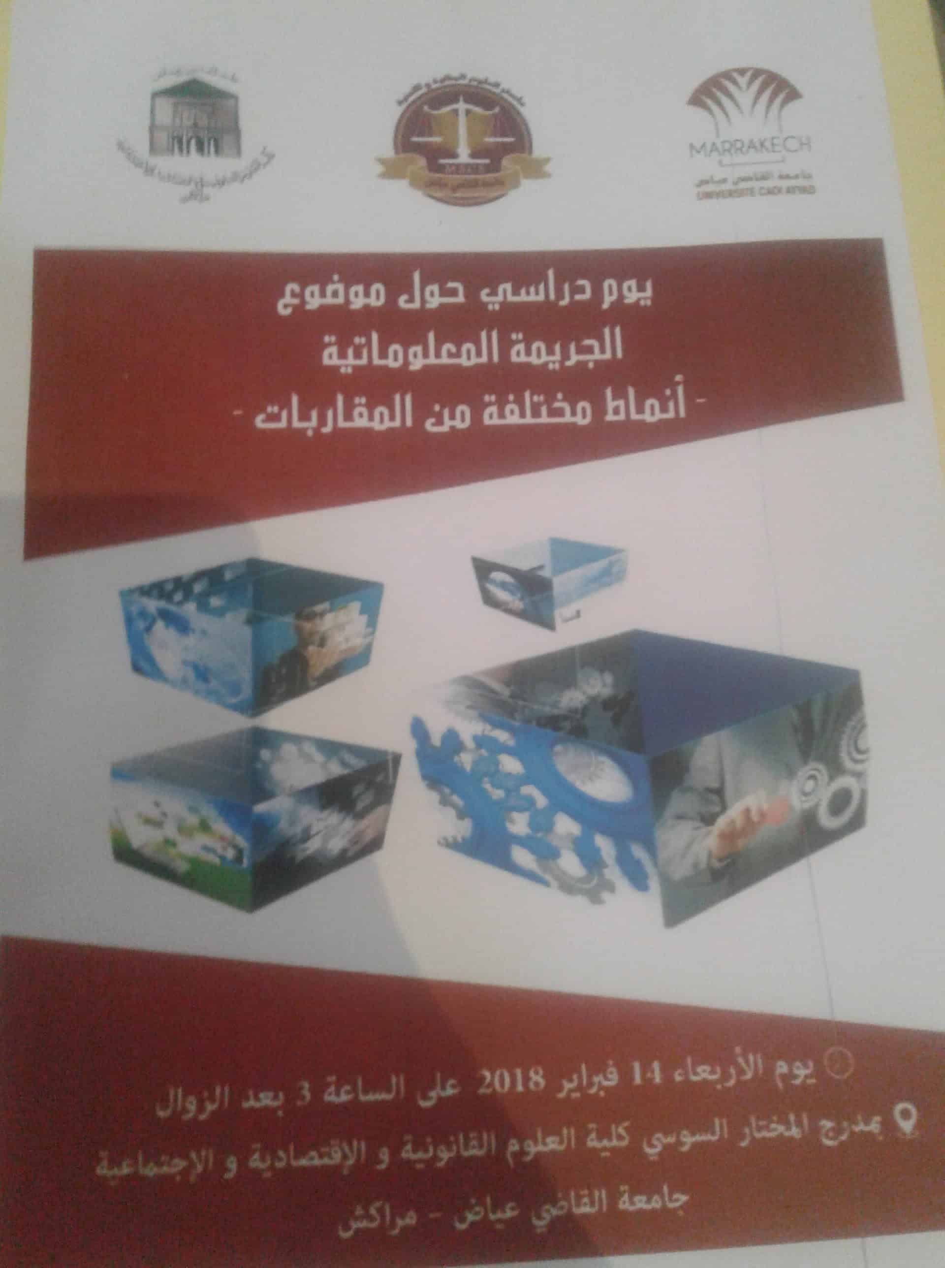 “الجريمة المعلوماتية-انماط مختلفة من المقاربات-” محور يوم دراسي بكلية العلوم القانونية بمراكش من طرف طلبة ماستر العلوم الجنائية والامنية