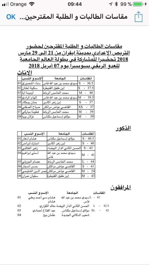 ويقوم المنتخب بتربص اعدادي بمدينة افران حيث تضم الائحة 16 عداء و عداءة يتقدمهم البطل هشام امغار من جامعة مولاي اسماعيل بمكناس و ابن مدينة امزميز العداء حسن اندجار من جامعة القاضي عياض.