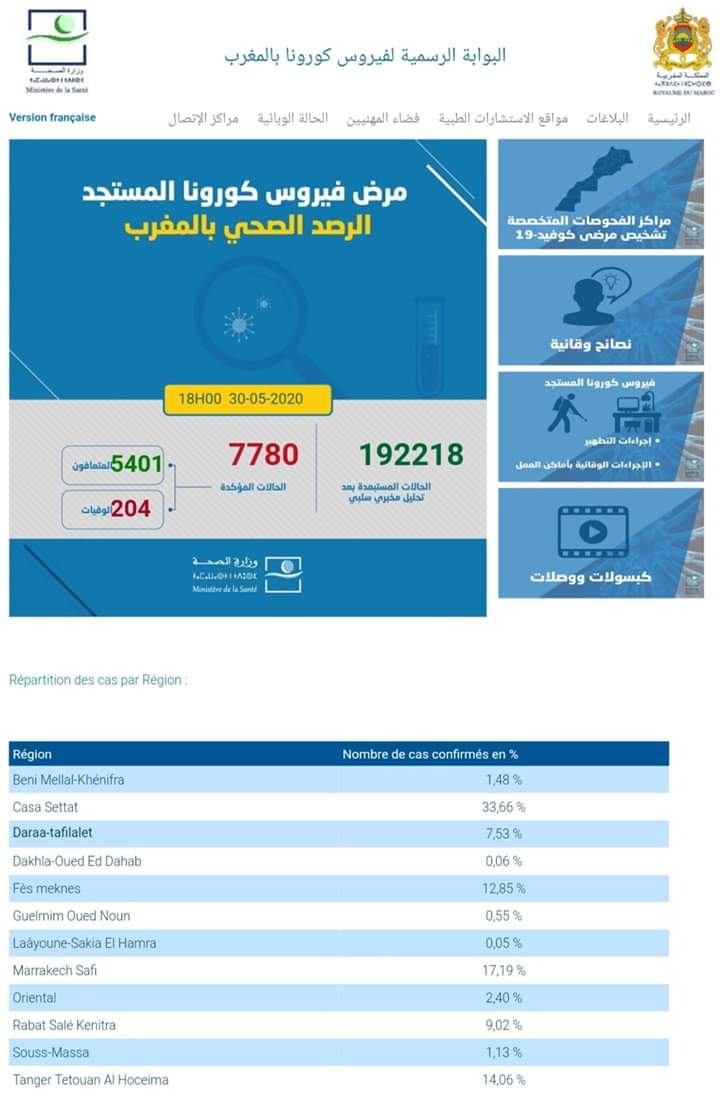 الحالة الوبائية بالمغرب ليوم السبت 30 ماي 2020