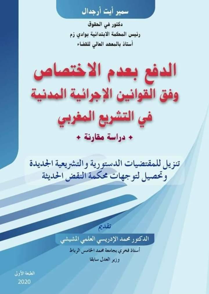 صدر للدكتور سمير ايت ارجدال رئيس المحكمة الابتدائية بوادي زم والأستاذ بالمعهد العالي للقضاء مؤلف عن مطبعة دار المعارف الجديدة حول: “الدفع بعدم الاختصاص وفق القوانين الإجرائية المدنية في التشريع المغربي، دراسة مقارنة” من تقديم فضيلة الدكتور سيدي محمد الإدريسي العلمي المشيشي.