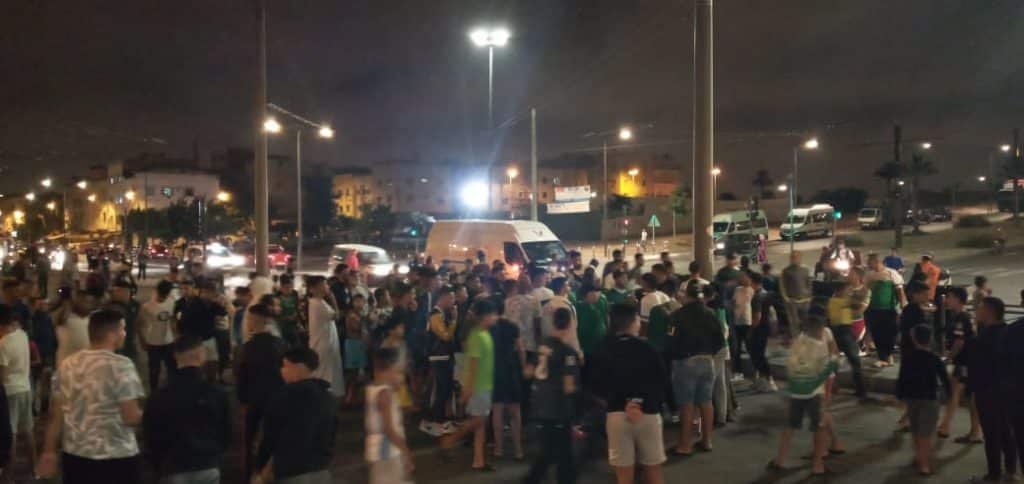 حيث واصل أنصار الفريق الأخضر ترديد الهتافات و الشعارات الخاصة إلى ساعات متأخرة من ليلة الاحتفالات باللقب رغم أن السلطات الأمنية بالعاصمة الاقتصادية قامت بالإغلاق جميع المنافذ المؤدية لكورنيش عين الذئاب و مداخل و مخارج المركب الرياضي محمد الخامس في خطوة استباقية لتهدئة الاوضاع من خلال وضع مجموعة من الحواجز الأمنية في الشوارع الرئيسية قبل و بعد المباراة، تحسبا لوصول الجماهير للملعب للاحتفال بالتتويج…