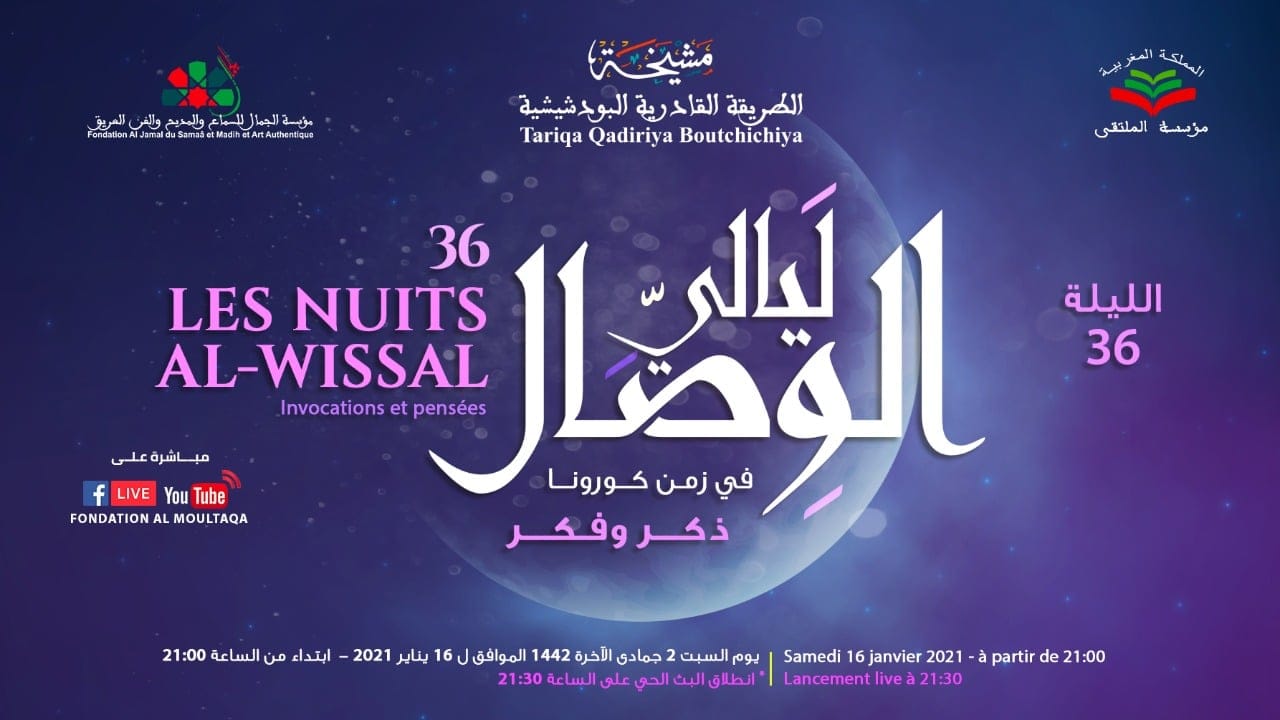 علاقة بفعاليات ليالي الوصال ” ذكر وفكر في زمن كورونا ” ، أعلنت مؤسسة الملتقى التي يرأسها الدكتور منير القادري بودشيش، ومشيخة الطريقة القادرية البودشيشية تنظيم الليلة الرقمية السادسة والثلاثين، مساء السبت 16 يناير الجاري، بشراكة مع مؤسسة الجمال.