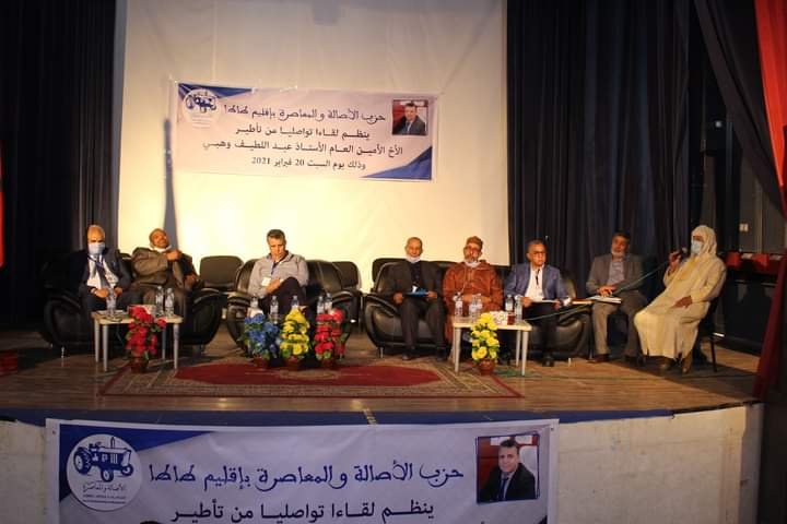 انسجاما مع البرنامج الزمني المحدد من طرف الأمانة العامة الجهوية لحزب الأصالة و المعاصرة بجهة سوس ماسة تم تنظيم لقاءات تواصلية مع مناضلي الحزب بإقليم طاطا، في أفق الإطلاع ميدانيا على وضعية التنظيمات الإقليمية تحضيرا للإستحقاقات الإنتخابية المقبلة، عقد الأمين العام للحزب السيد “عبد اللطيف وهبي”، لقاءا تواصليا مع منتخبي ومناضلي الحزب بمدينة طاطا ، وذلك يوم السبت 20 فبراير 2021 بطاطا وذلك في إطار تجديد تواصل حزب الجرار مع منتخبيه و مناضليه بإقليم طاطا .