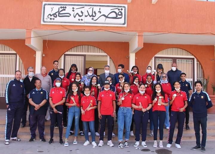 إستقبل السيد محمد بلفقيه رئيس بلدية كلميم، يوم أمس الثلاثاء 23 مارس 2021 بمقر الجماعة رئيس و أعضاء و أطر و لاعبات نادي باب الصحراء لكرة اليد سيدات بحضور السيدة خديجة الحيان عضوة مجلس الجهة و بعض الأطر الجماعية. و يأتي هذا الاستقبال بعد أن تمكن النادي من التأهل لنهائي البطولة الوطنية لكرة اليد سيدات برسم الموسم الرياضي 2019/2020 ، و التي جرت يوم الأحد 21 مارس 2021 بقاعة النخيل بمدينة مراكش أمام فريق اتحاد النواصر أحد أعرق الأندية الوطنية. و يأتي استقبال الرئيس لهذا النادي في إطار تشجيع الفريق النسوي ممثل مدينة كلميم و كذا لإبراز الدور الهام الذي يقوم به المجلس الجماعي من خلال دعم و مساندة الفريق.