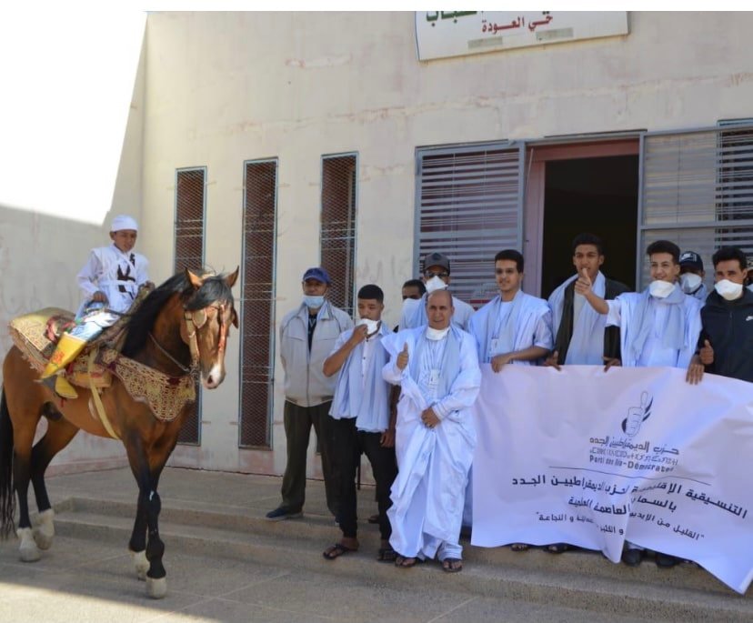 حيث حضر جمعا معها من مناضلي ومناضلات الحزب استهل الكلمة عضو اللجنة التحضيرية محمد سالم الوالي عرف من خلالها باهداف الحزب وتاريخ التأسيس وبرنامج الحزب لياخذ الكلمة للاخ اللودي الركيبي عضو اللجنة التحضيرية عرج من خلالها على أهمية التمثيل الحزبي ودعاء الحضور الى الانكباب والانخراط فالحزب ليفسح المجال للاخ محمد لمين بنعمي عضو اللجنة التحضيرية للحزب واستهل كلمته بالترحيب بالمناضلين والمناضلات ودعاء الشباب إلى الانخراط في الحزب والمشاركة بكثافة فالاستحقاقات القادمة وثمن دور الشباب والمرأة في تغير الوضع بعد ذلك فتح باب النقاش اللحاضرين انكب مجملها على القضايا التي تعنى بالوضع الإقليمي ودعوة الشباب إلى الانخراط في الحزب ليتم بعد ذلك انتخاب السيد بنعمي محمد لمين منسق وكاتب اقليمي عن الحزب بمدينة السمارة لتعطى بعد ذلك الكلمة للاخ المنسق الاقليمي رحب من خلالها بالمناضلات والمناضلين ودعاء الجميع الى الانكباب والانخراط فالحزب وحضور الشباب والمرأة في العمل السياسي والتمثيل كل هذه الاجواء مرت في احترام تام لاجراءات المتبعة والاحتراز من ورباء كوفيد19 من ارتداء الكمامات والتباعد الاجتماعي