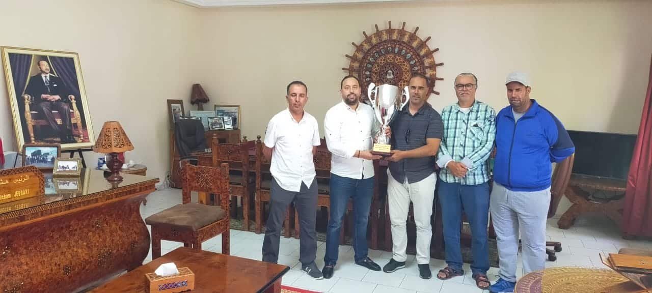 الصويرة : أيوب الهداجي في بادرة تنم عن العرفان بالجميل، أقدم المكتب المديري لنادي الامل الصويري لكرة القدم على مشاركة فرحة الصعود للقسم الثاني هواة، مع السيد هشام جباري رئيس المجلس الجماعي للصويرة الذي ساهم في توفير جل الظروف الملائمة حتى يتحقق حلم الصعود لممثل مدينة موكادور