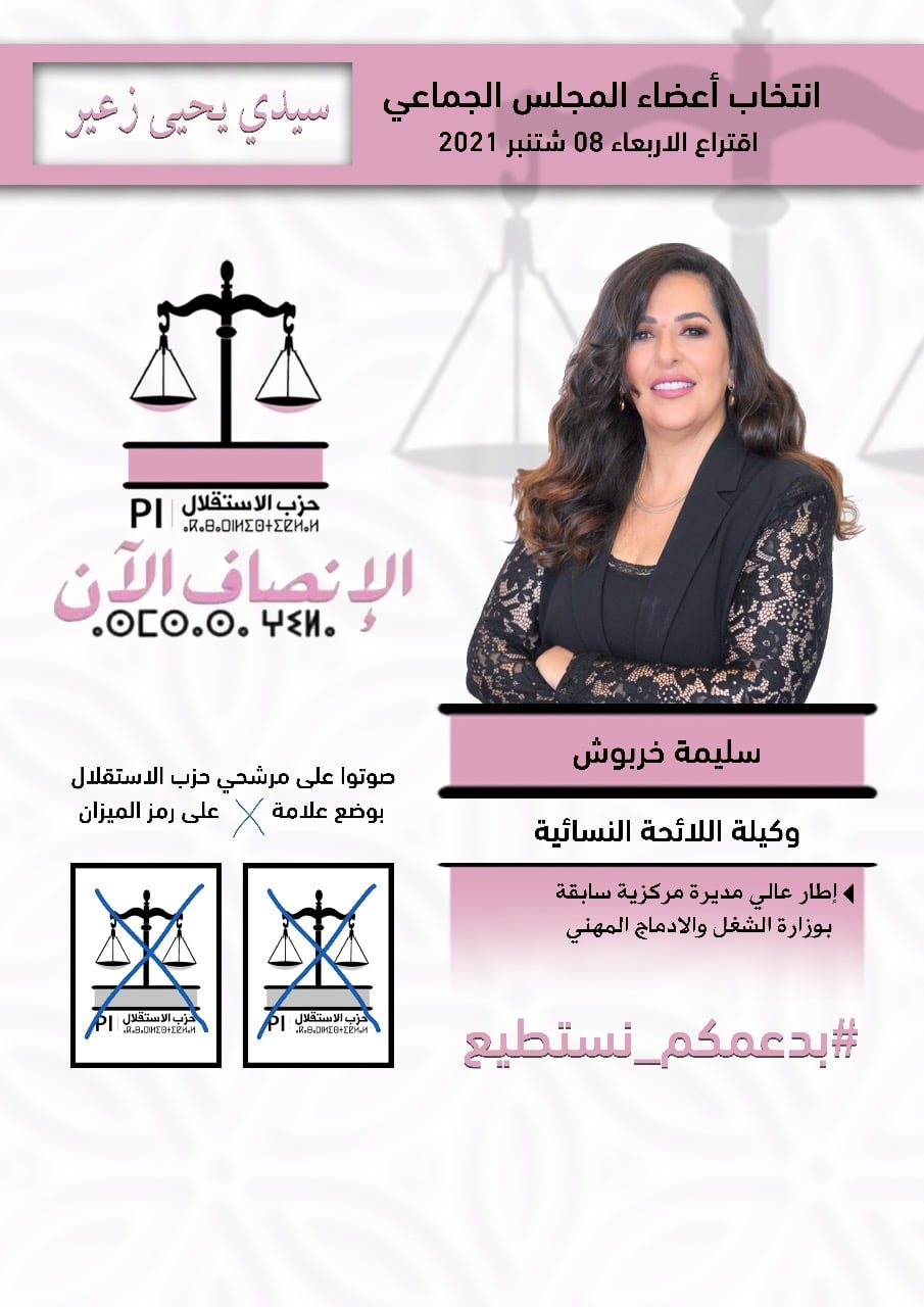 الصخيرات تمارة : سليمة خربوش كفاءة وطنية تقود اللائحة النسائية للانتخابات الجماعية بسيدي يحيى زعير تامسنا النور.