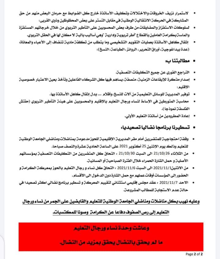 الاحتقان مستمر في قطاع التعليم بالحوز ودعوة الجامعة الوطنية للتعليم لمعركة الكرامة
